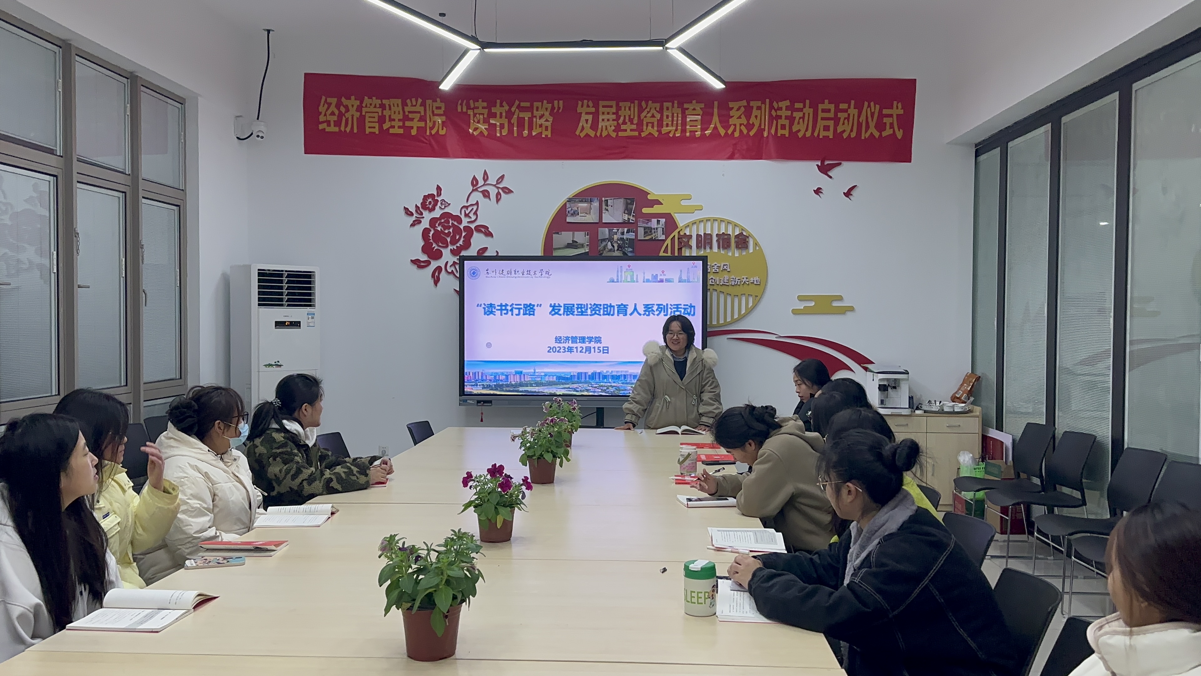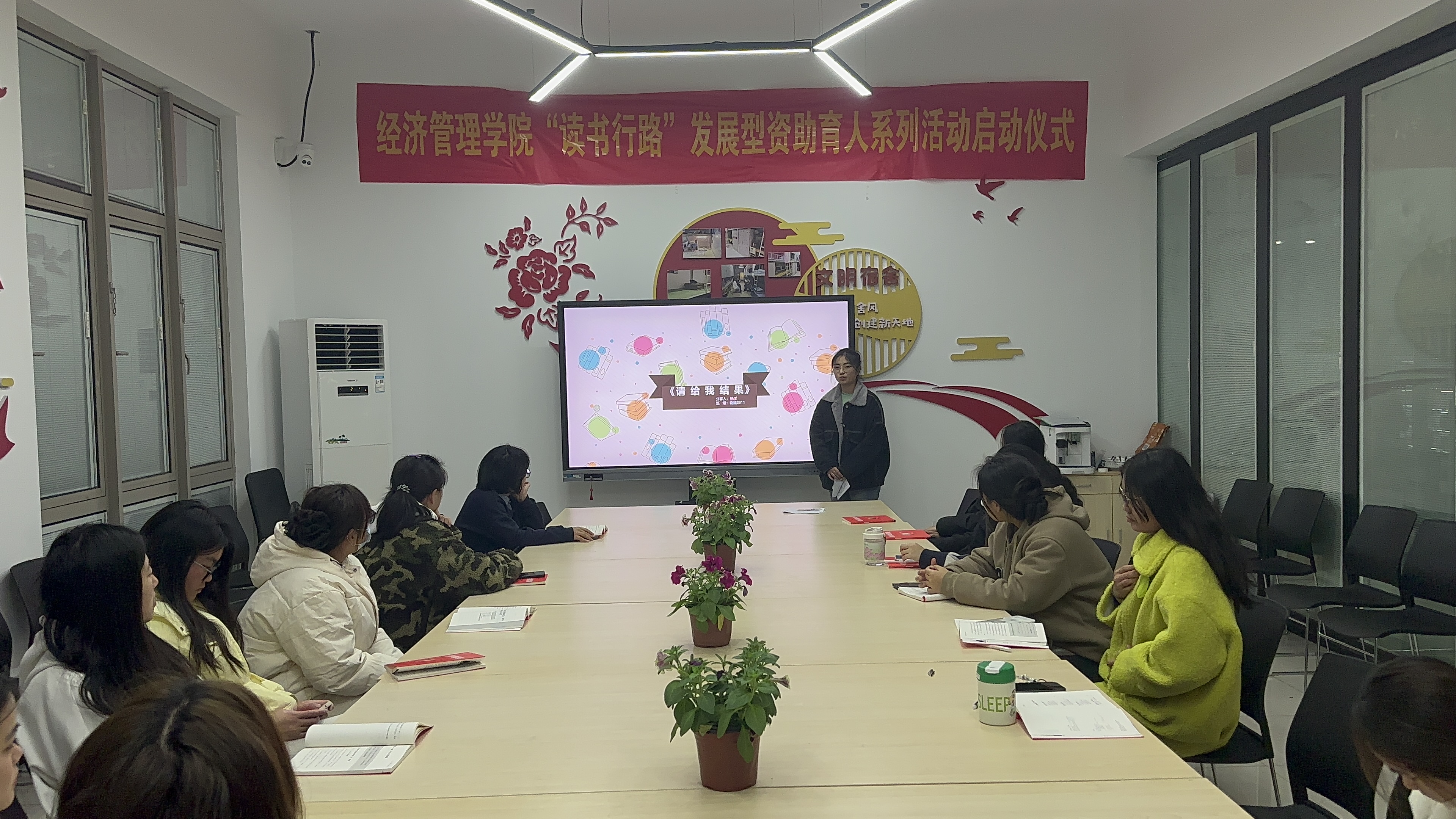 12月15日晚,经济管理学院“读书行路”发展型资助育人系列活动之第三期读书分享会在紫薇社区活动室开展,活动由辅导员步滕滕主持,22级、23级学生代表参与。