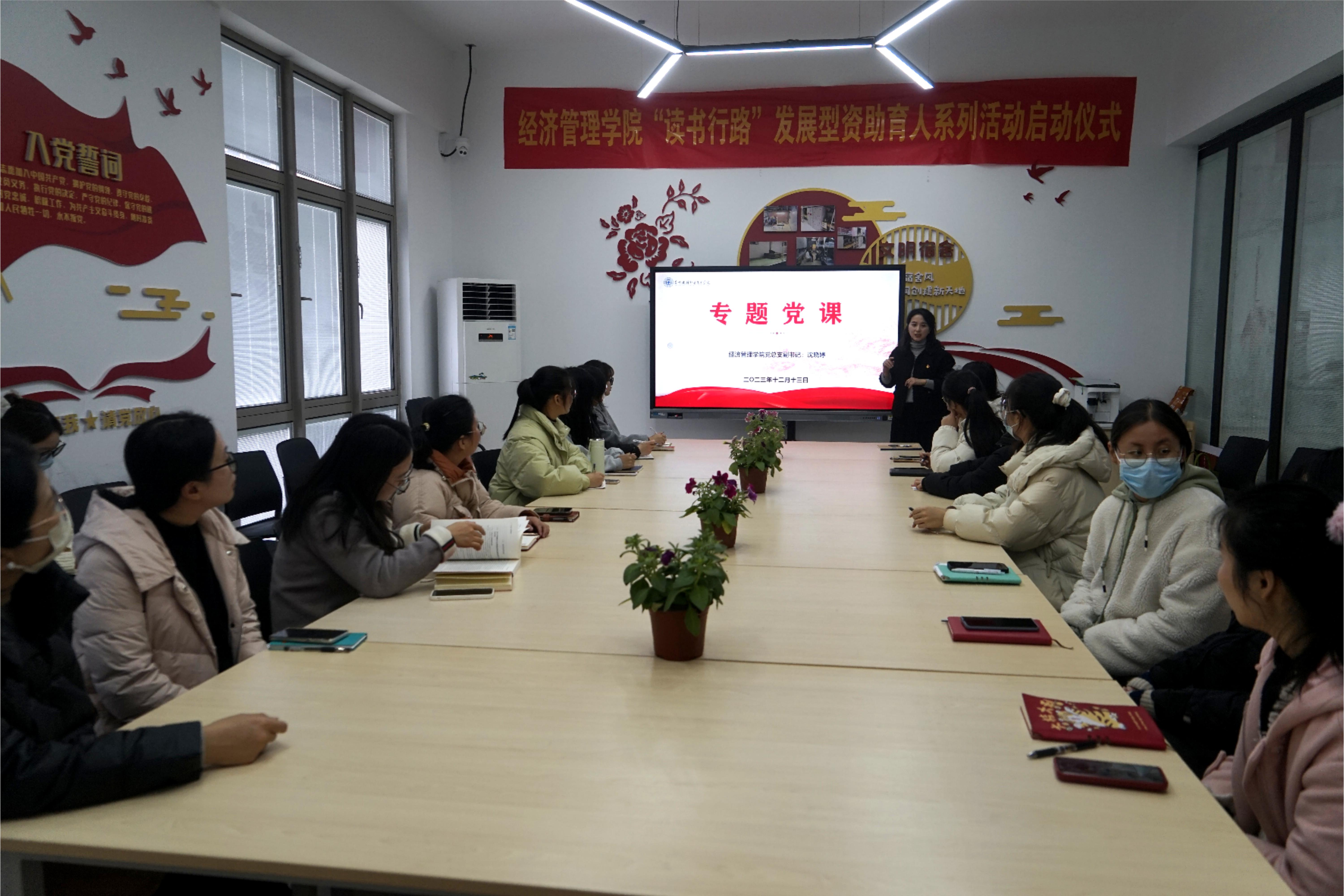为推进学习贯彻习近平新时代中国特色社会主义思想走深走实,12月13日下午,经济管理学院在紫薇社区开展“牢记嘱托 感恩奋进 走在前列”专题党课,党课由经济管理学院党总支副书记沈晓婷主讲,经济管理学院全体党员教师参加。