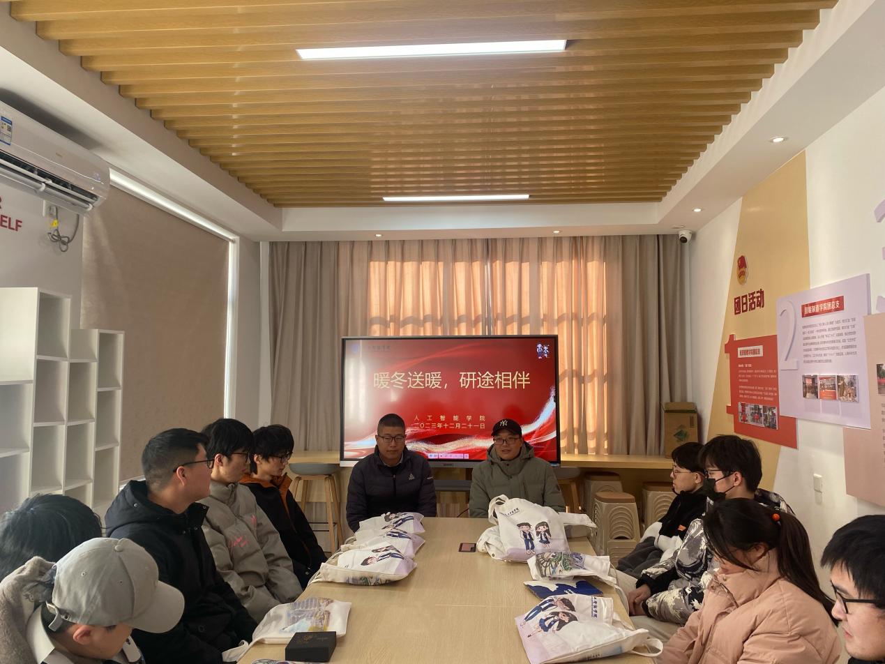 软件204是我院与常州大学合作办学的本科班,为增强该班考研学生的信心,缓解考前备考压力,12月21日,人工智能学院党总支副书记陈东生和副院长章朋在“一站式”学生社区开展“暖冬送暖,研途相伴”慰问活动,为即将参加考研笔试的学子们送上诚挚祝福和暖心礼包。