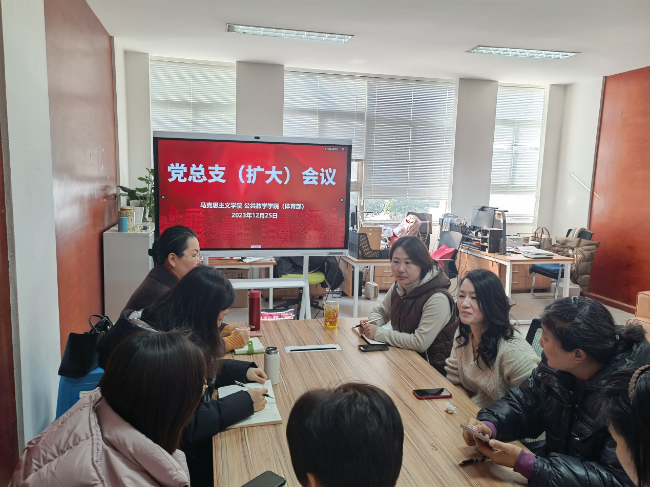 12月25日上午,马克思主义学院 公共教学学院(体育部)召开党总支(扩大)会议,全体总支委员、支部书记参加会议,会议就党支部书记工作、总支委员分工、宣传工作制度及2024年度党建重点工作等方面进行研讨,听取各参会人员的意见和建议,会议由党总支副书记吴成炎主持。