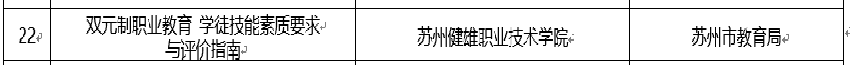 2023年,由经济管理学院侯彦博老师主持开发的苏州市地方标准《DB3205/T 1085-2023 双元制职业教育 学徒管理规范》已于10月9日由苏州市市场监督管理局正式发布,10月16日开始实施;由人工智能学院贾瑞老师主持于2022年11月立项建设的苏州市地方标准《双元制职业教育 人才培养数字化管理指南》目前已完成征求意见稿,并已将根据征求意见修改完成的技术审查稿上报苏州市市场监督管理局,正在接受技术审查。
