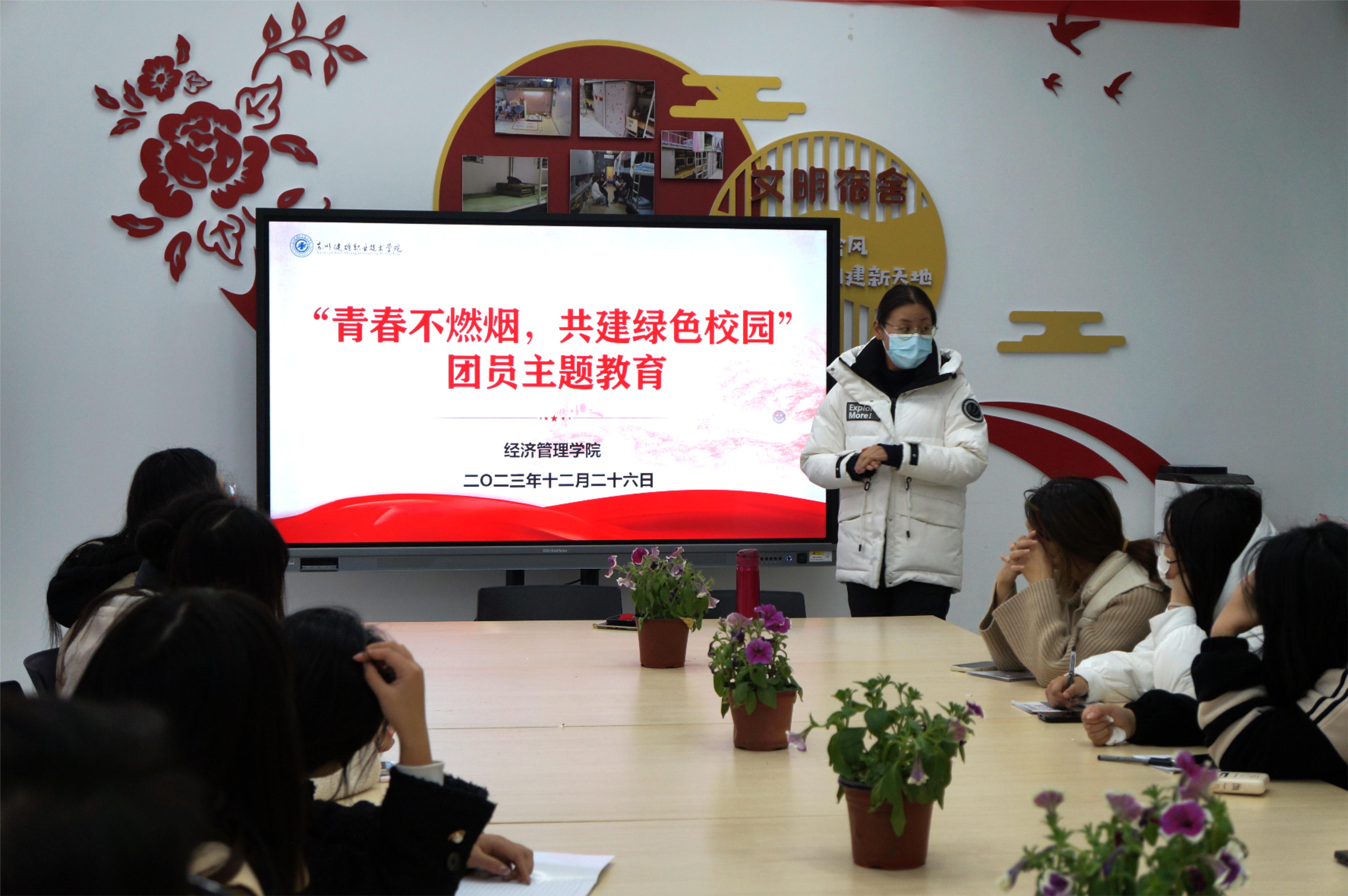 为进一步加强我院禁烟、控烟宣传教育,了解烟草及二手烟危害,动员广大师生共筑无烟校园环境,12月26日下午,经济管理学院在紫薇社区活动室开展“青春不燃烟,共建绿色校园”团员主题教育活动。本次活动由辅导员顾宇婷老师主持,部分团员代表出席参与。