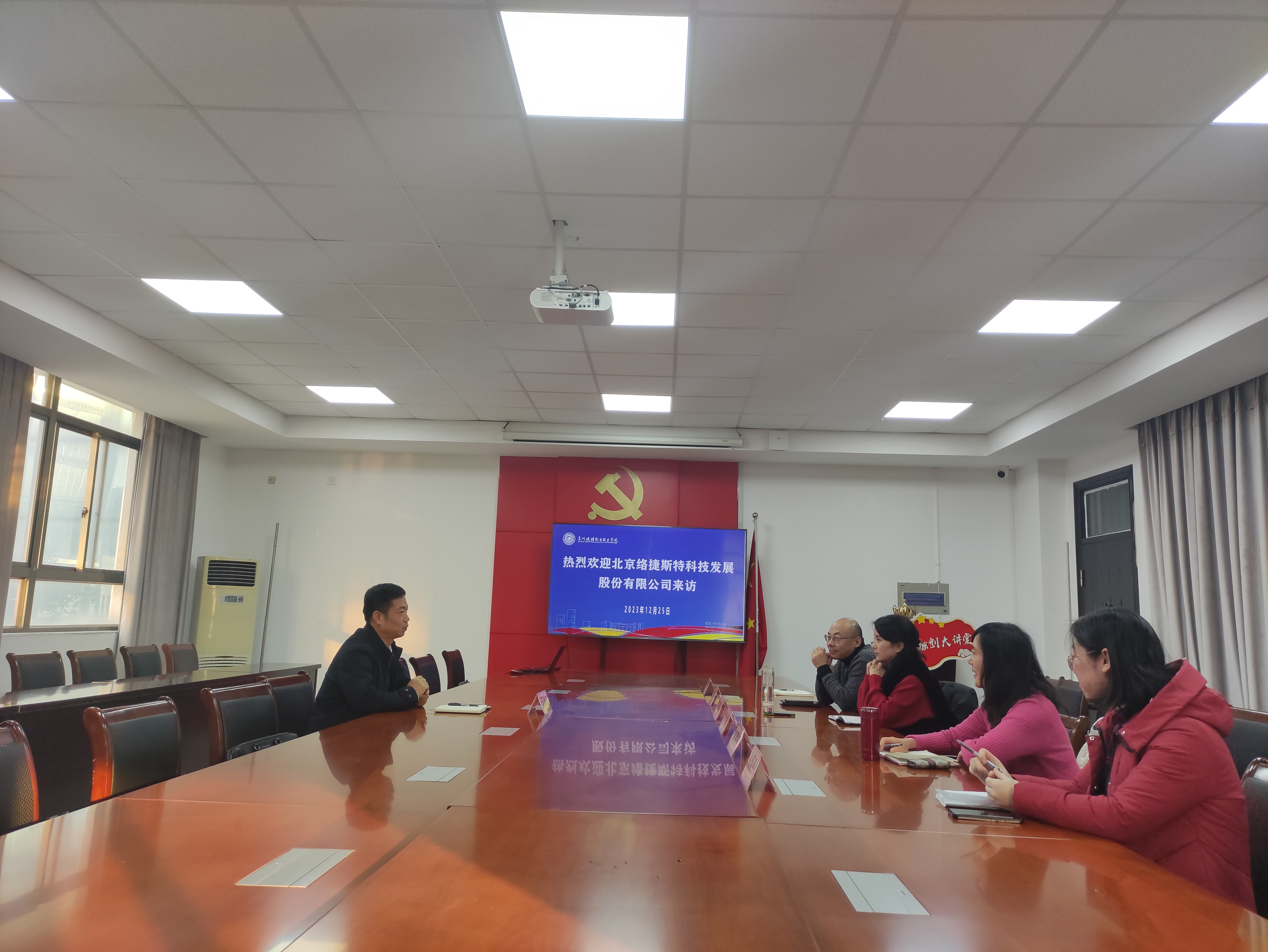 为深化产教融合,完善校企合作协同育人机制,经济管理学院邀请北京络捷斯特科技发展股份有限公司来校研讨校企共建事宜。经济管理学院党总支副书记沈晓婷、副院长傅兰,校标准化工作推进办公室主任苗向阳和现代物流管理专业负责人陶春柳老师等参加了研讨会。