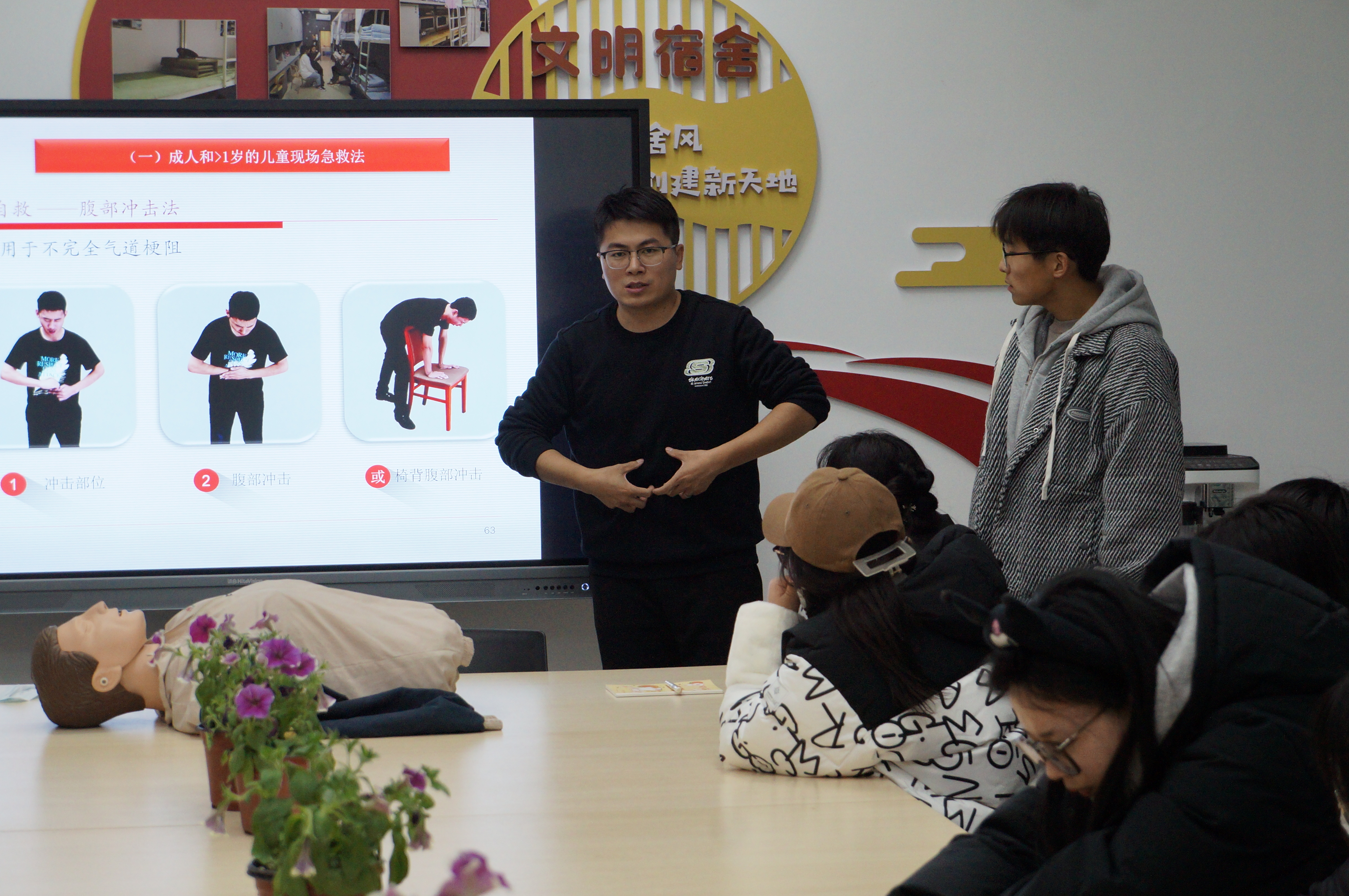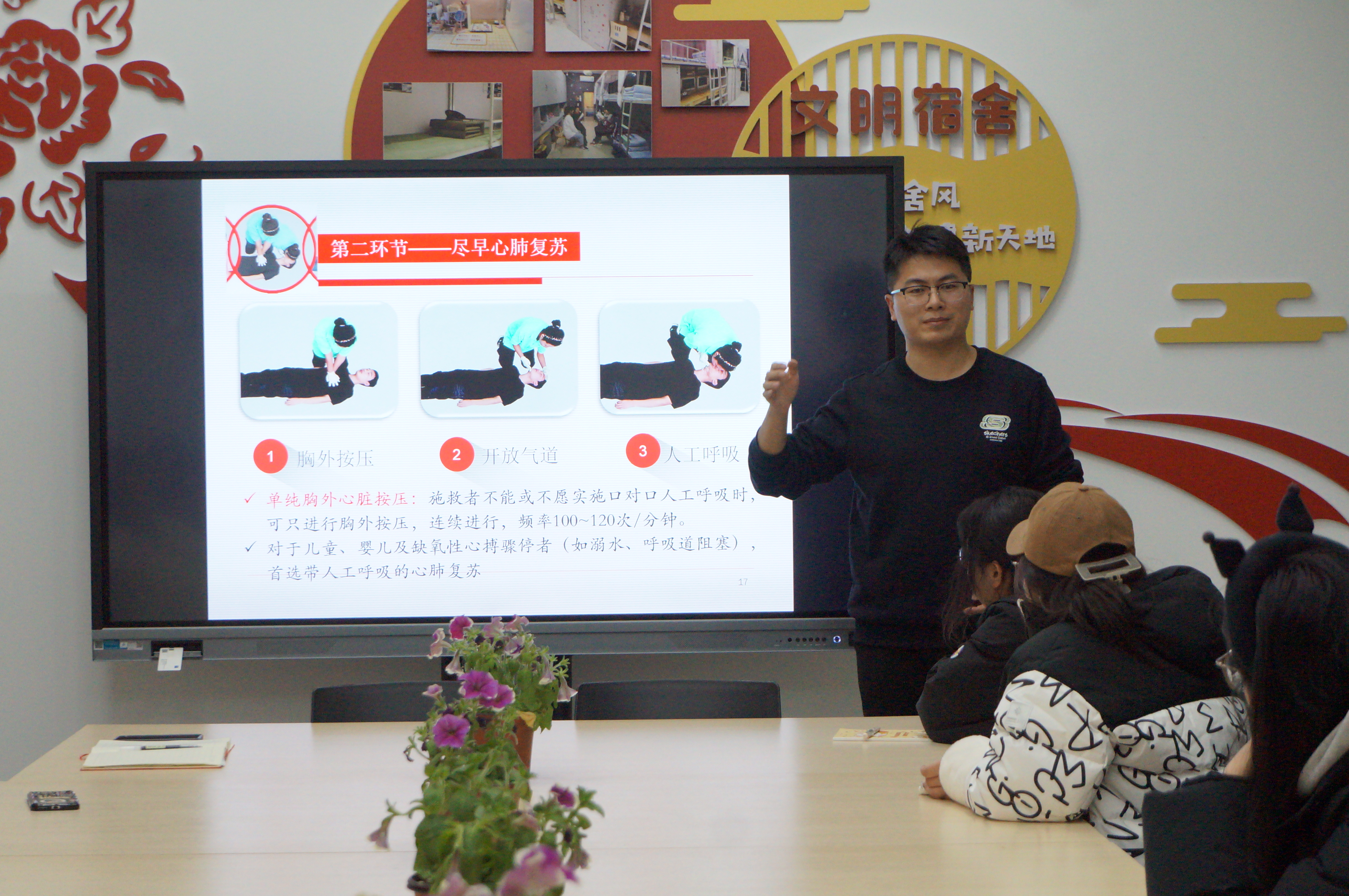 为有效普及应急救护知识,提升学生自救互救能力,切实保障学生生命健康安全,近期,经济管理学院在紫薇社区开展了“长一技之长,创安全校园”冬季校园安全讲座暨急救技能培训会。该培训由太仓市应急救护培训师、经济管理学院辅导员王富友担任主讲,2022级和2023级的宿舍长代表参加了此次活动。