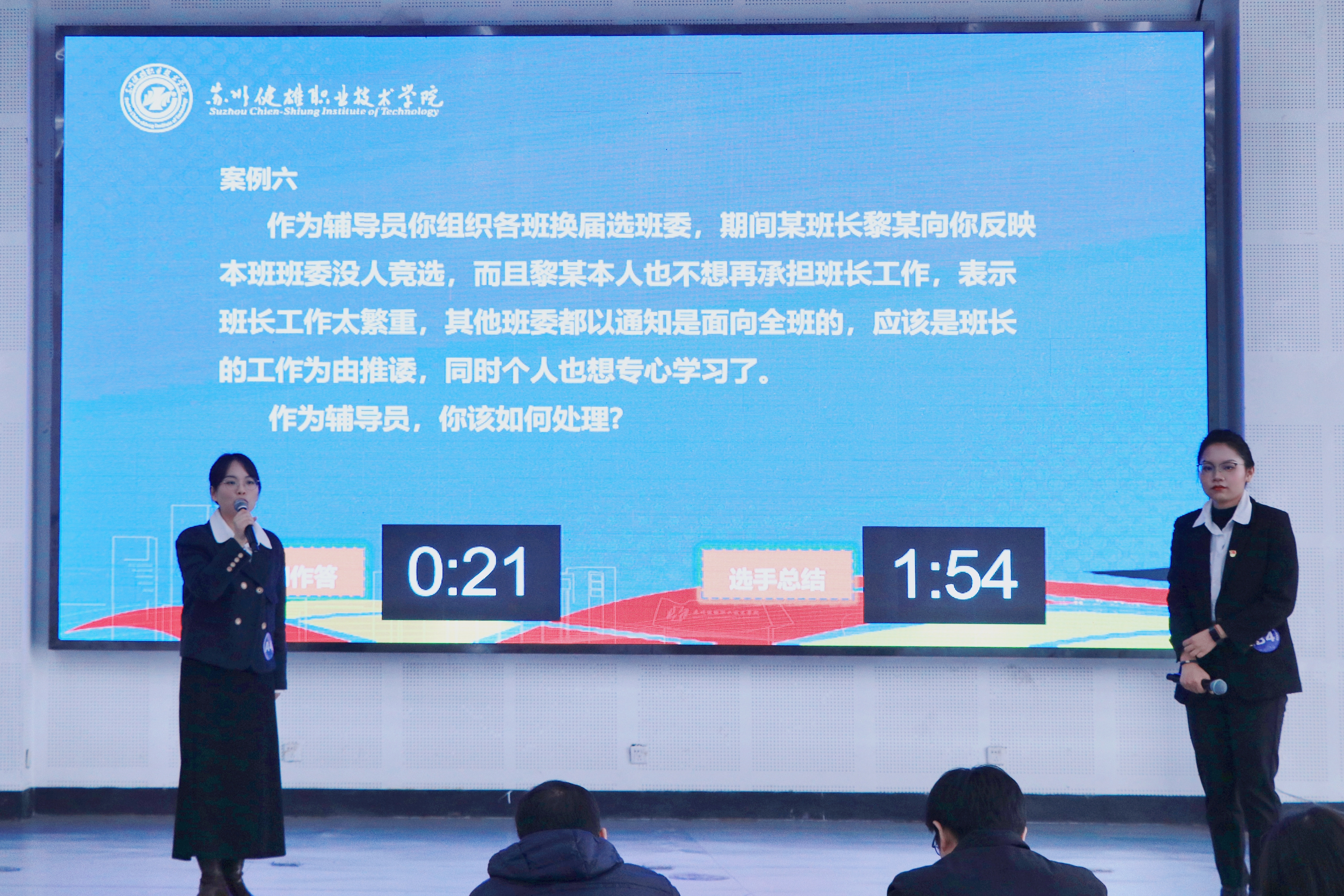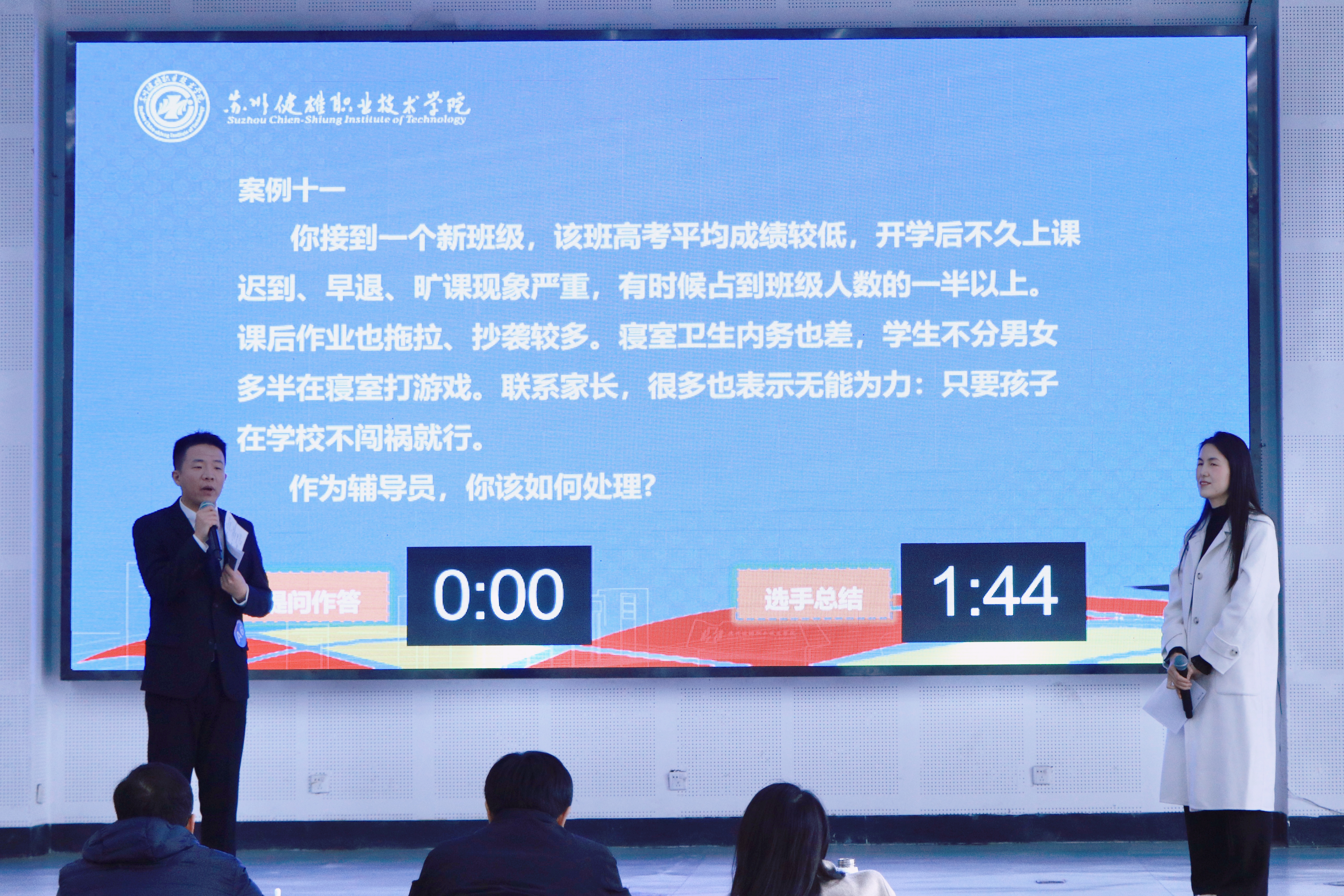 本次辅导员素质能力大赛决赛共分为案例研讨和谈心谈话两个环节,经过前期的理论知识测试,共有12名老师进入决赛。