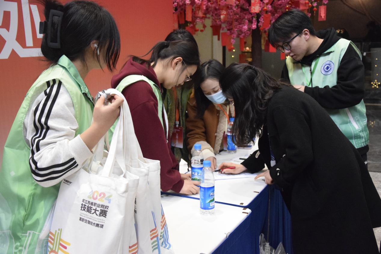 “我们组主要负责在酒店接待参赛学校的老师和选手们,并且在接送大巴上提醒参赛院校选手们午餐、晚餐的地点,发车时间、比赛所需携带的证件等。”参赛接待组志愿者杨梦婷表示,虽然比赛这几天每天早上都要5点多起床,6点就要在酒店就位,但通过参加志愿服务,她认识了很多志同道合的同学,还结识了其他学校的优秀同学。