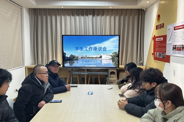 2月26日晚,人工智能学院院长郑广成、党总支副书记陈东生,辅导员罗毅、律心同前往学生宿舍看望学生,了解学生报到情况。宿舍走访后,郑广成院长和陈东生副书记在学生社区与学生代表开展了新学期学生座谈会。