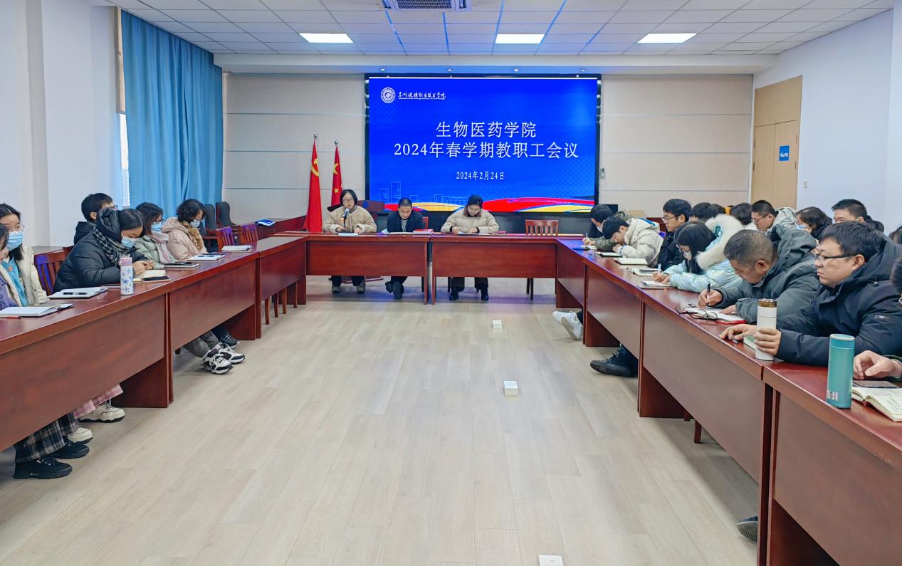 为做好新学期的各项工作部署,2月24日下午,生物医药学院在D3-514召开2024年春学期开学工作会议,会议由生物医药学院党总支书记曹跃兴主持,学院全体教职工参加。
