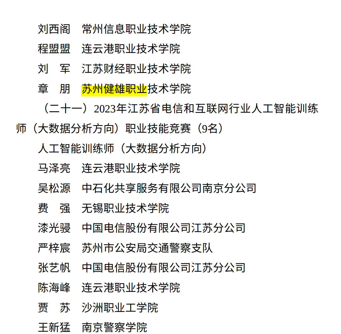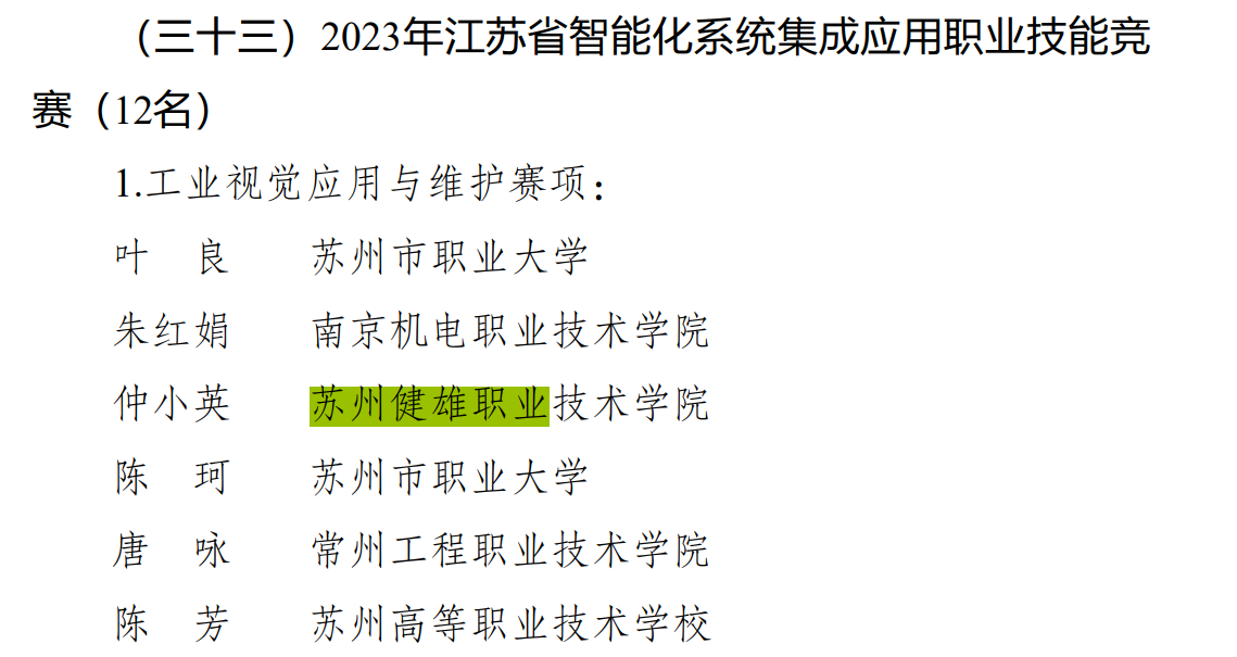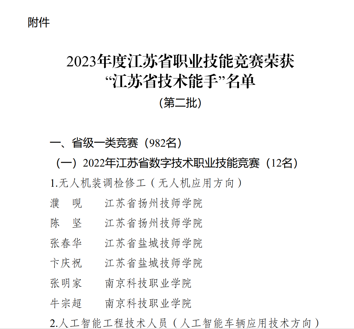 2023年重点通过“江苏工匠”“状元杯”等赛项,发挥教师所长,开出参赛清单,并全方位推动,让教师通过真实的“赛项”得到技能锻炼、技术提升,通过参加“智能电子产品设计与制作”“物联网技术应用”“物联网安全调试员”“网络安全信息评估与处置”“智能化智能系统集成应用”赛项,参赛教师聚力深挖行业技术技巧、钻研技艺技法、熟悉行业技能规范和标准,五个赛项获得一等奖5项,二等奖6项,章朋、仲小英、沈啸、宋林桂、浦灵敏、郑广成等六位老师荣获江苏省技术能手称号,苏州健雄职业技术学院人工智能学院荣获江苏省技术能手创年度历史新高,实现了师资队伍锻育技术能手的目标,为深化“三教”改革之教师改革蹚出一条有效路径。(图文/郑广成 审核/陈东生)