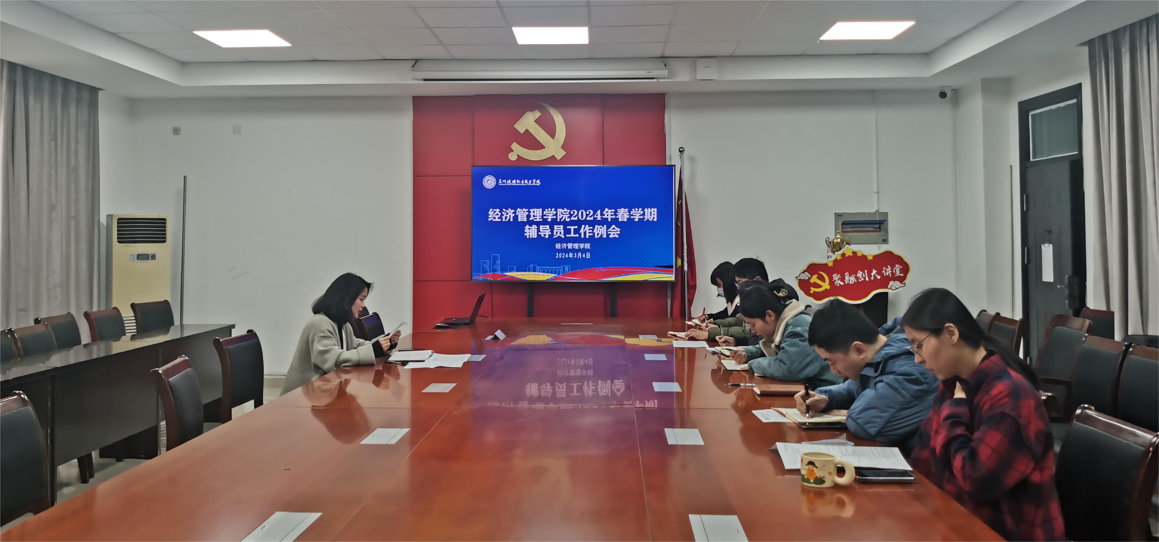 2024年3月4日上午,经济管理学院召开2024年春学期辅导员工作例会。会议由学院党总支副书记沈晓婷主持,经济管理学院全体辅导员参会。