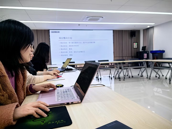 会议首先由陈有权老师强调了本学期教材发放及学期初上课要求及注意事项,介绍了SGAVE项目2024年度机电一体化专业资格考试(2022级学生)中期考试准备工作情况,布置本学期入校辅导工作。之后,由5位老师分别进行SGAVE资格考试考官培训、SGAVE机电一体化技术专业第三、四期师资培训汇报。