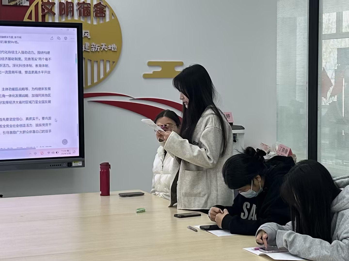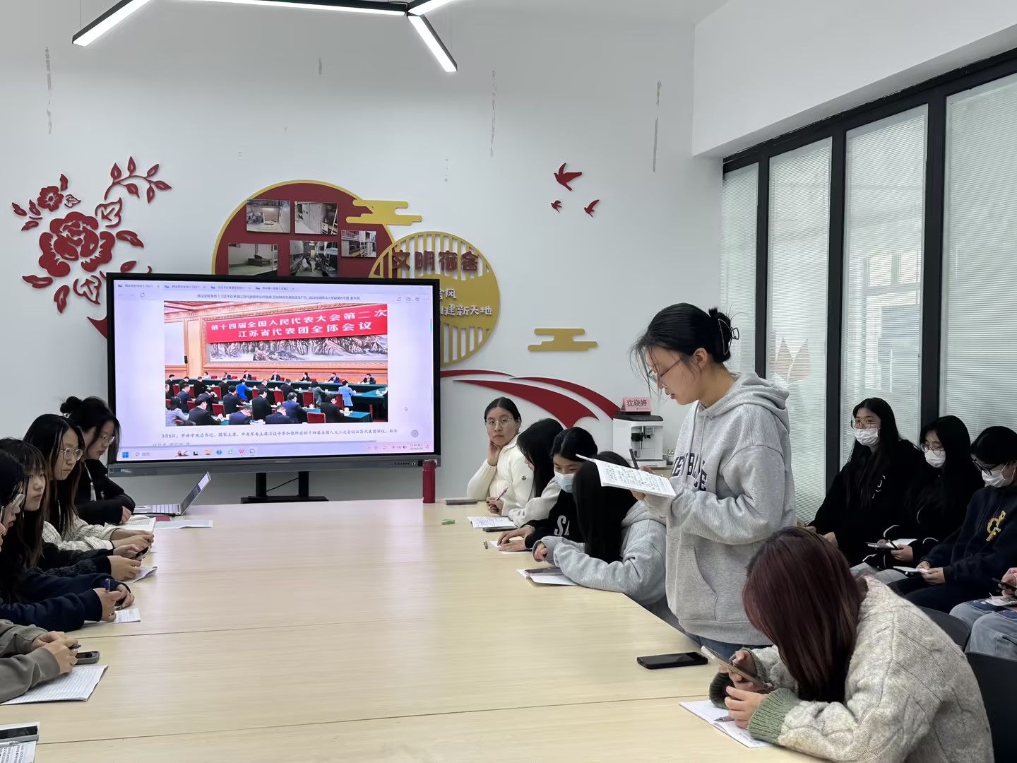 为深入引导青年团员了解国家大政方针,汲取两会精神力量,3月26日下午经济管理学院在紫薇社区开展“学习两会精神 激发奋进力量”学生素质能力提升活动。辅导员顾宇婷、23级团员代表参与此次活动活动由团总支(学生)副书记龚欣妍主持。