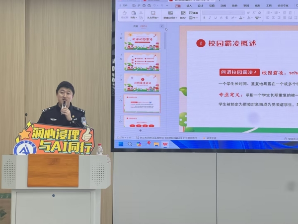 为积极响应3月心理健康月,推出有特色、有温度、有意义、有效果的心理主题活动,打造人工智能学院AI心理营“一院一品”特色心理项目,3月27日下午,人工智能学院邀请太仓市公安局朱佳祺警官,开展了“润心浸理,与AI同行”心理主题讲座暨心理情景剧表演活动。