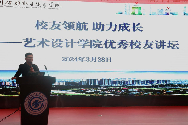 为更好凝聚校友力量,加强校友与母校之间的联系,发挥优秀校友榜样引领作用,帮助学生确立人生奋斗目标,激发学习动力。3月28日晚艺术设计学院在图书馆报告厅举办了“校友领航助力成长”优秀校友讲坛。装饰艺术设计专业2016届优秀校友、苏州子墨设计品牌创始人、总经理兼设计总监张宏民进行分享,2022级、2023级环境艺术设计专业,建筑室内设计专业学生参加本次讲座。