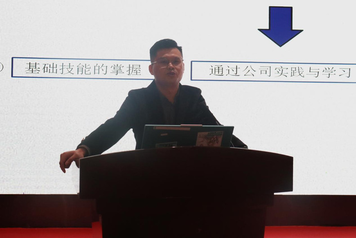 在讲座中张宏民分享了自己在学习阶段、实习阶段、就业阶段和创业阶段的经验与心得。在分享从实习生到设计师的转变过程中,他认为在校内理论学习时掌握精炼基础专业技能;岗位实习时将自己所学的知识技能与公司企业文化理念相结合;就业后不同职位的实战经验积累全面提升自己的职业素养与能力,三者是不可或缺的。