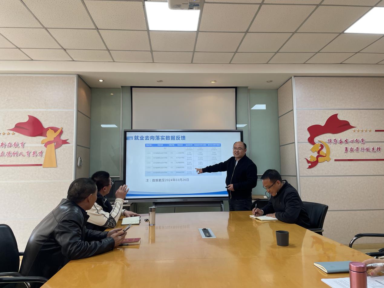 会上曹跃兴强调了就业工作对于学院及学生个人发展的重要性,并对全体与会人员提出了殷切期望。张秀庭从全校层面对就业工作进行了宏观分析和指导,并对即将开展的就业数据上报、就创业活动等工作进行了指导,他结合当前就业形势,提供了宝贵的就业建议和策略。21级班主任也就班级情况等问题作了交流发言,分享了各自班级就业工作的经验和做法。随后王玉介绍了2024届毕业生实习工作总体情况,结合实习就业会议精神,对当下的2024届毕业生就业工作进行了部署。