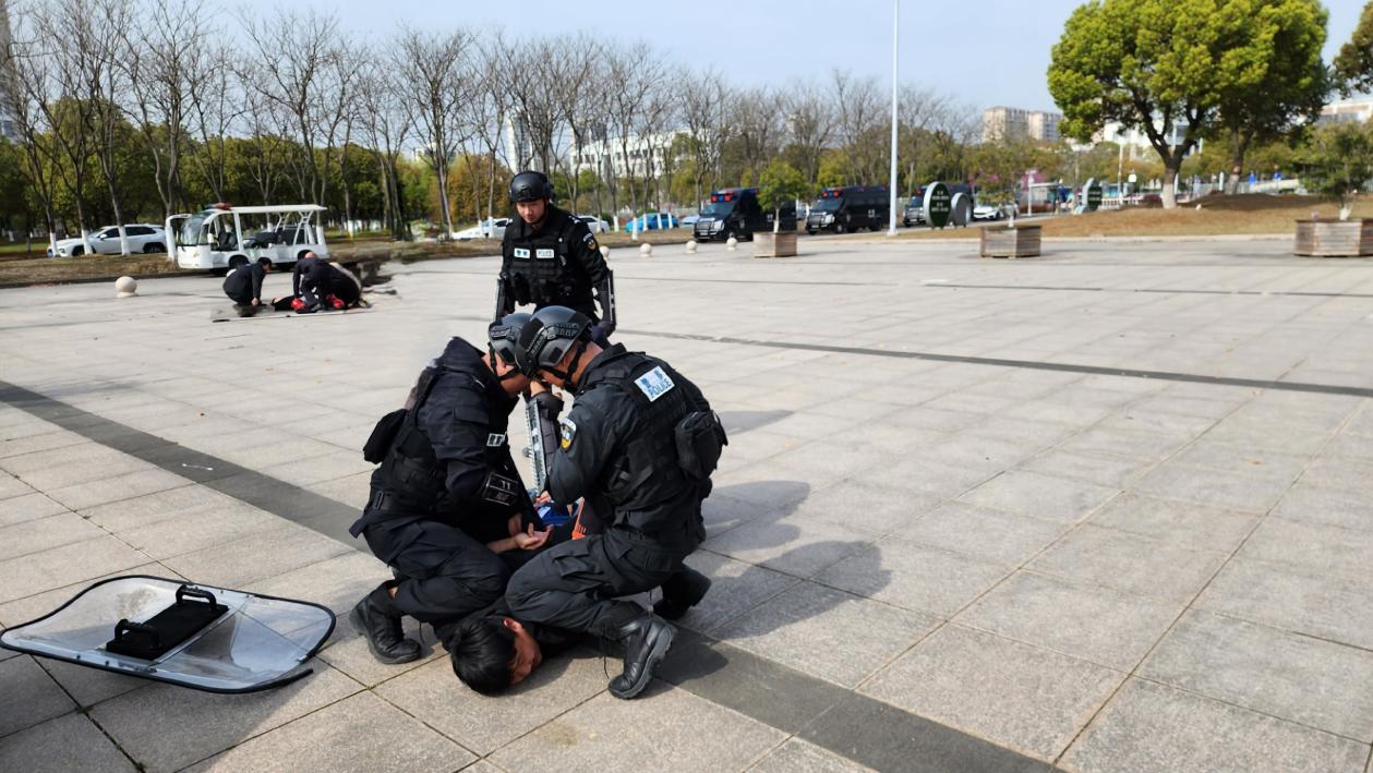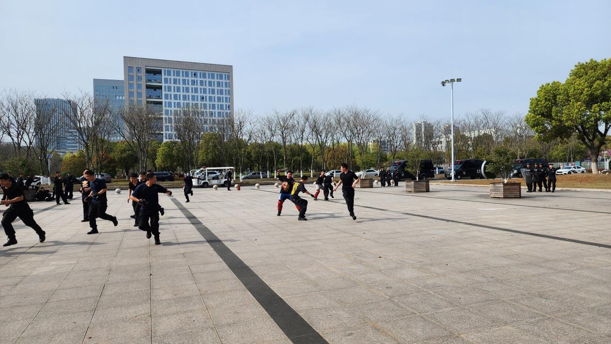 为增强安保人员安全防范意识,提高反恐防暴应对能力,做到反应迅速、处置及时,确保校园和谐稳定,4月1日,保卫处联合属地公安部门于学院东校区科创大楼北广场开展反恐防暴应急演练。