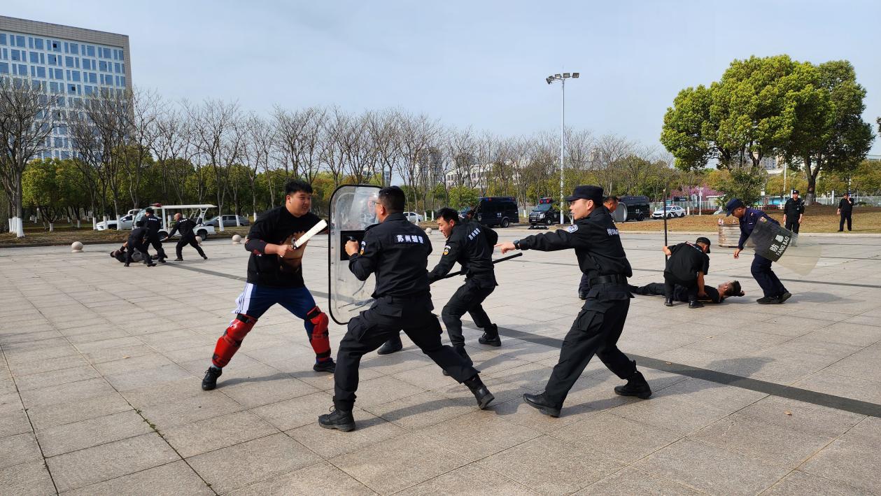 演练结束后,太仓市公安局巡特警大队武刘成警官对整个演练过程进行了总结,并从警校互联互通、险情应急处置、防暴器械使用等方面对我院安保队伍进行培训讲解。(图/庄永胜 文/陈云兴 审核/王志明)