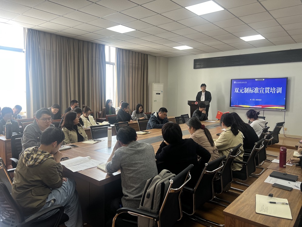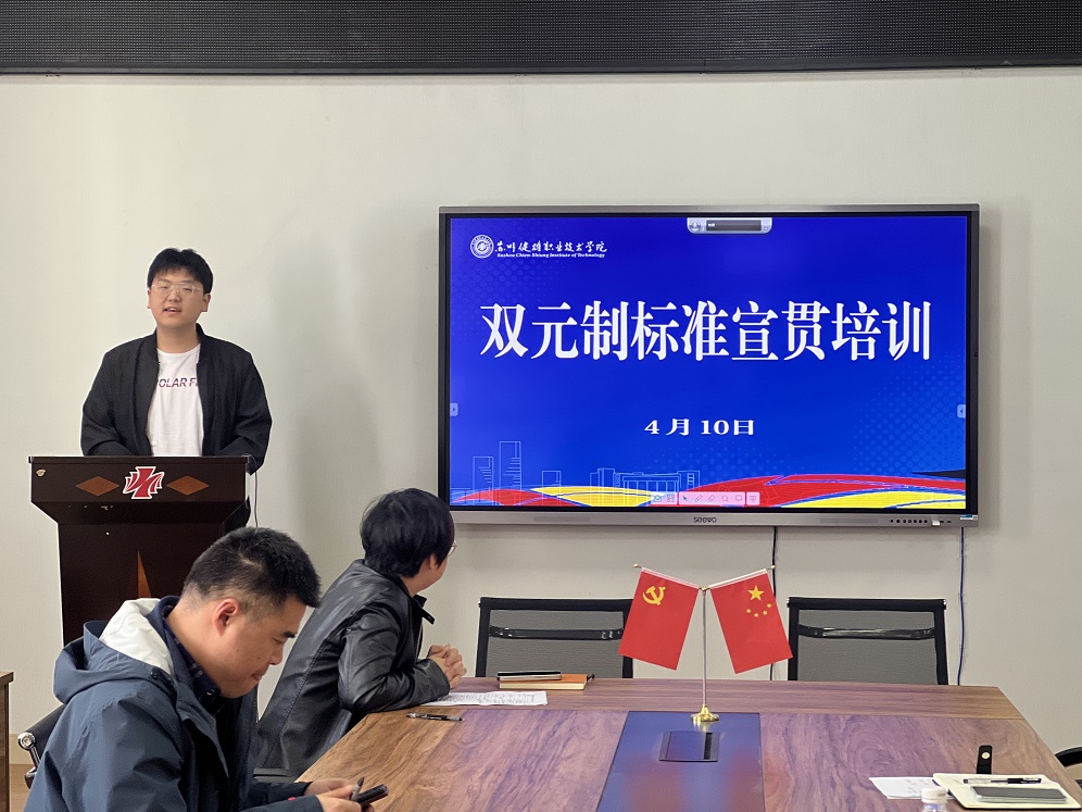 4月10日下午,人工智能学院在D2-303会议室开展了标准宣贯培训,由标准化专员王剑飞老师为全体老师培训了“双元制职业教育学徒管理规范”标准,旨在让老师们掌握标准化要求,提升职业教育理念。
