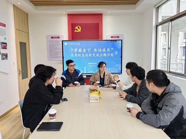 作为智能制造学院迎接建校20周年系列活动之一,为让智能制造学院学子们近距离对话优秀校友,感悟工匠精神。4月12日,智能制造学院在紫薇社区举行“紫薇舍下 共话成长”优秀校友返校交流主题沙龙。本次沙龙特邀到2022届常熟理工学院3+2项目优秀毕业生李浩宇、李想、卞永健担任嘉宾,学生处副处长赵璐、智能制造学院指导教师徐弈辰、辅导员代表陆旻忆及学生代表参加此次活动。