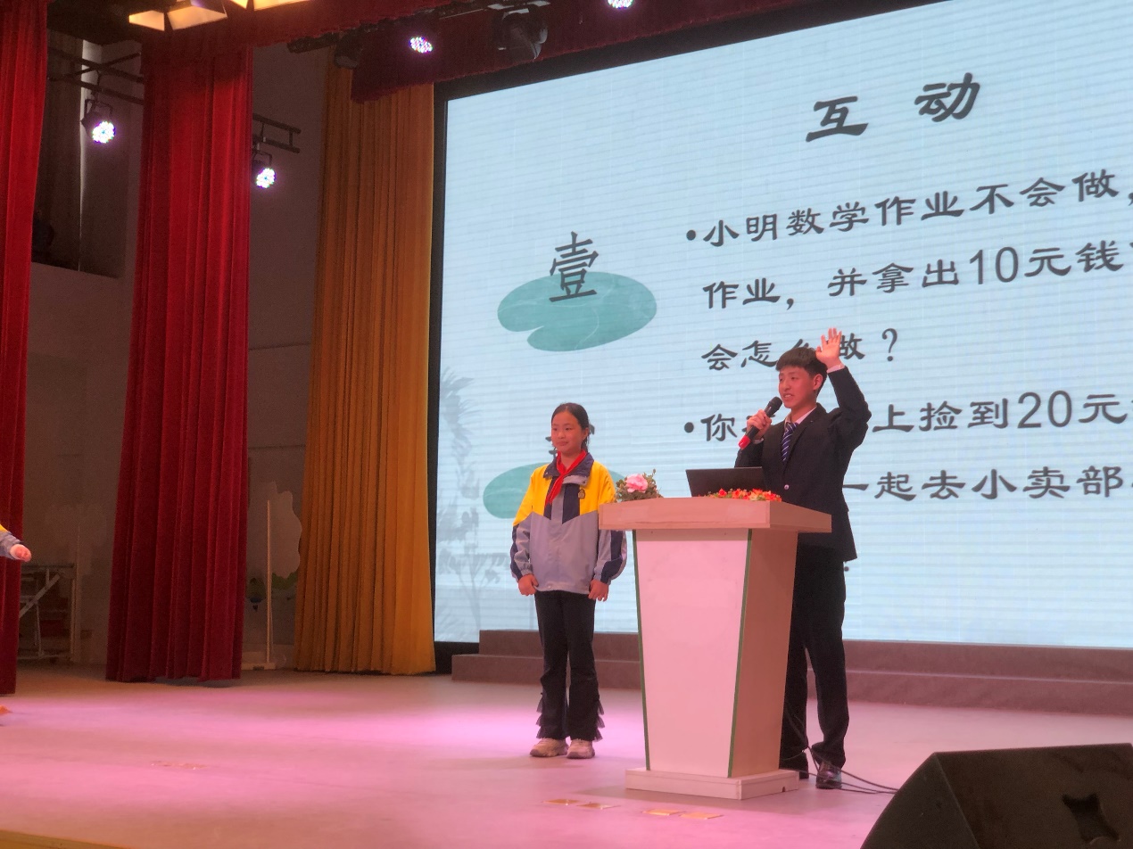 接着,马英奇以校园里的廉洁进行互动,考验大家如果遇到了类似问题,自己该怎么做。科实小的“小牛人”们纷纷举手,积极回答,现场气氛十分热烈。