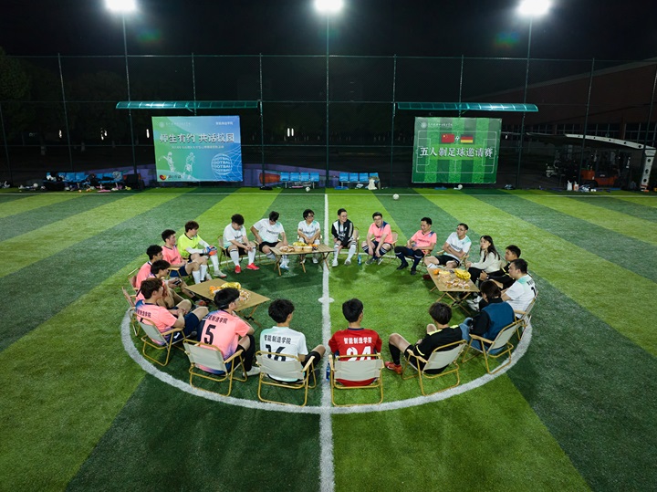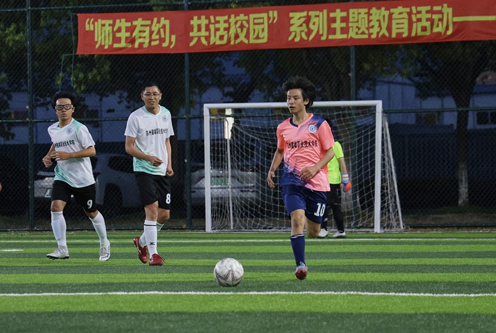 4月18日,苏州健雄职业技术学院智能制造学院举办“师生有约,共话校园”系列活动。此次活动以“校—企—生”五人制足球赛为纽带,搭建交流联动平台,营造有幸福感和归属感的校园氛围。赛场上,队员们挥洒汗水,展现青春风采;赛后,大家围坐球场,就学院发展、特色建设、校企合作等话题进行深入交流。接下来,我院将持续打造“师生有约”系列活动,建立文体活动长效机制,完善心理健康特色活动,坚持美育浸润,培养“有为”青年,建设“有为”校园,多措并举推进“双元制”教育的高质量发展。(文/张云蕊 审核/周玲余)