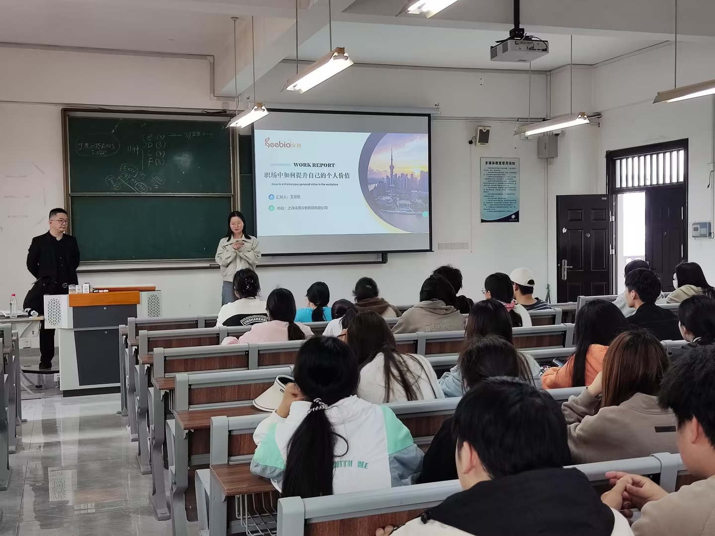 讲座伊始,王从如何选择职场、进入职场的基本技能、快速提升职场价值的关键三个方面展示讲述,以青年喜闻乐见的方式,给同学们带来了一堂别开生面的“职前学堂”;同时,他结合个人的求学、工作经历,深入浅出引导同学们为未来的职业发展奠定坚实基础。活动现场,还即兴邀请学生演练“两分钟自我介绍”,现场气氛热烈,效果良好。