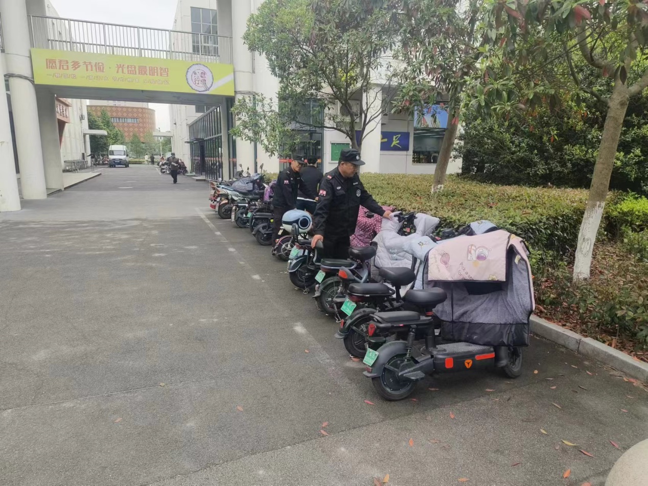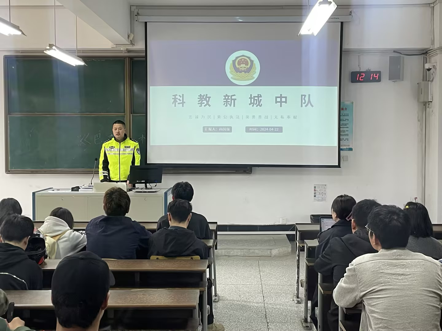 在进出校园高峰期,安保人员认真做好机动车、电瓶车疏导,提醒师生员工在校内减速慢行,注意避让行人。在食堂、教学楼和学生宿舍等重点区域,保卫处安排专人进行车辆停放管理,引导师生员工将车辆停放到指定位置,防止影响校内道路通行,堵塞消防通道。同时,进一步加强校内交通设施的检查和维修,在校门口增加交通安全提示,在重点道路划上禁止停车标线,在中德培训中心西侧停车场划出汽车停车位。此外,保卫处联合科教新城交警中队,面向驾驶机动车上下学的学生集中开展交通安全教育,进行交通安全法律法规宣传,交警结合交通事故典型案例,以通俗易懂的语言向同学们细致讲解了安全行车、文明乘车和交通事故应对等内容。