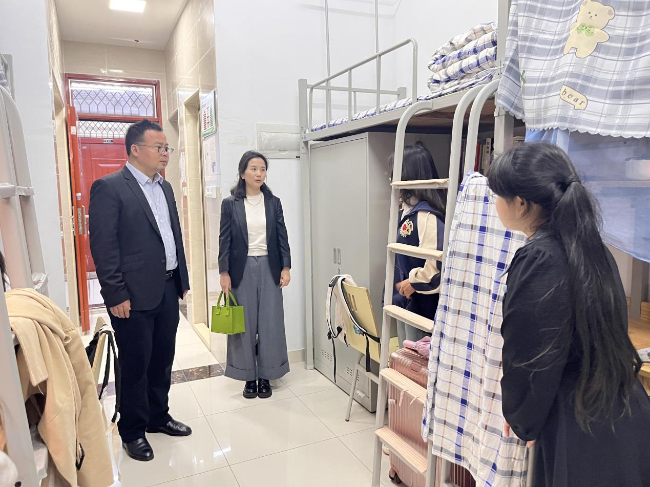 在学生宿舍,樊奇和沈晓婷叮嘱学生假期离校一定要关好宿舍门窗、水电,按要求履行报备手续,在校外期间要注意人身安全,谨防诈骗,留校同学要时刻关注消防安全,严格遵守作息制度,按时熄灯就寝,维护校园秩序,做到遵规守纪。