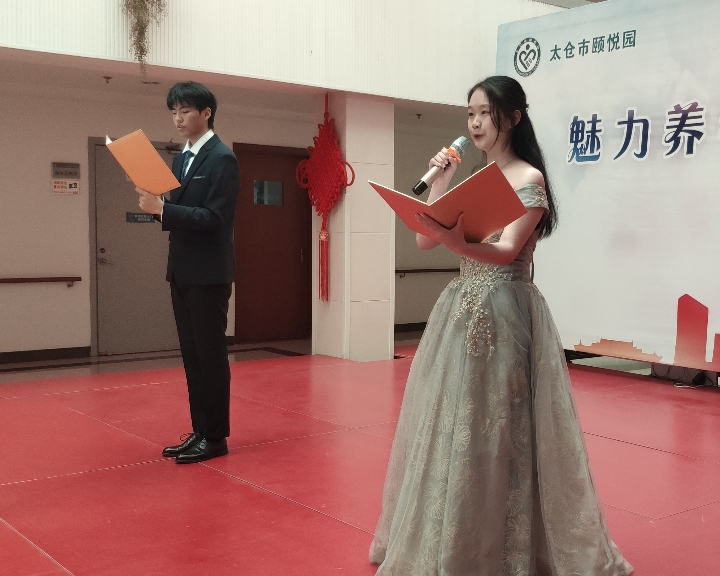 活动现场,人工智能学院的学生吴佳慧同学以其独特的嗓音,为在场的观众们深情演绎了歌曲《雨爱》。她的歌声温柔而富有力量,将爱意传递给了每一位听众。紧接着,余贤龙和徐欢同学联袂献上了一段深情的朗诵《这也是一切》。他们的嗓音充满磁性,将文字背后的意境和情感展现得淋漓尽致,令人陶醉其中。王泽辉同学以一曲伦巴独舞惊艳了全场。他的表演仿佛将观众带入了一个充满热情与活力的世界,让人为之倾倒。现场近百位老人时而鼓掌,时而欢笑,现场气氛温馨美好。最后在一首集体大合唱《劳动最光荣》的歌声中,演出推向了新的高潮。