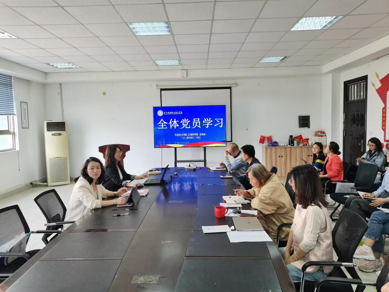 4月24日下午,马克思主义学院、公共教学学院(体育部)在C1-202部门会议室召开全体党员大会,开展党员“七个一”教育实践活动推进会,启动党纪学习教育。马克思主义学院、公共教学学院(体育部)党总支副书记、副院长韩学芹及我院全体党员参会,会议由周丽雅院长主持。