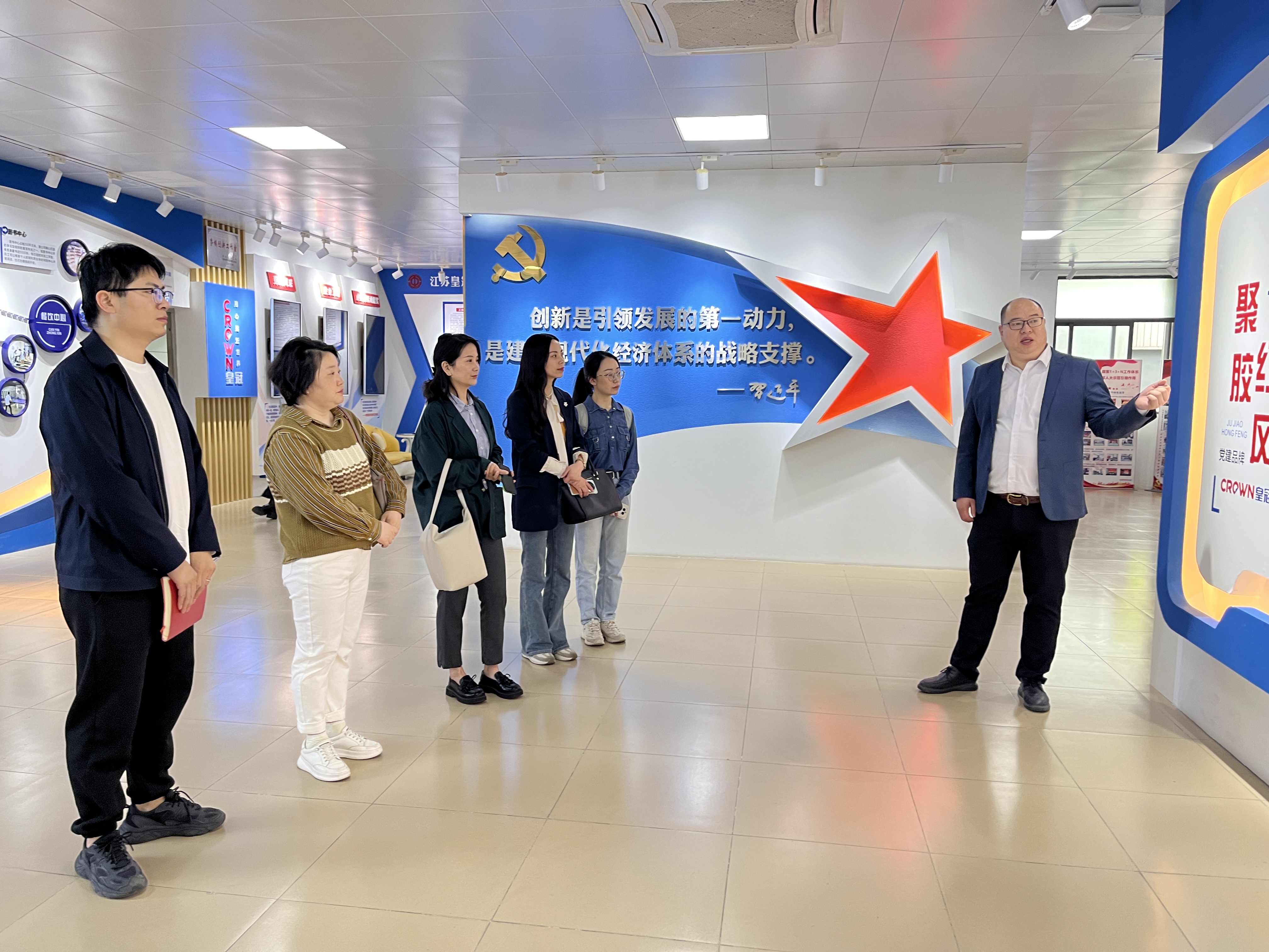 走进江苏皇冠新材料科技有限公司,党员教师们受到市人大代表、江苏皇冠新材料科技有限公司党支部书记、工会主席高军会的热烈欢迎。高总详细介绍了该公司“聚胶红风”党建特色品牌,以“建设福地红企增潜力、扩大福地红盟聚合力、勇当福地先锋添活力”为核心,引领公司全体党员争创一流业绩,勇当旗帜标杆。