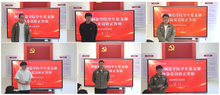会议伊始,答辩小组负责人为到场的答辩学生和评委们介绍了本次答辩会具体要求及环节,通报了学院2024年上半年党员发展情况,强调了公平、公正、公开的原则等评选要求。随后,答辩人向评委老师和同学们汇报了自己在政治思想、学习情况、志愿服务等方面的表现,用丰富饱满的热情和真诚的态度表达了自己对党组织的向往,用自信的风采展现了智能制造学院学生的精神风貌。随后6位答辩人通过随机抽题进行理论常识问答并接受全体党员提问,内容涉及《中国共产党章程》、党的二十大和《中国共产党纪律处分条例》等。后由正式党员以无记名投票的方式表决答辩通过情况。