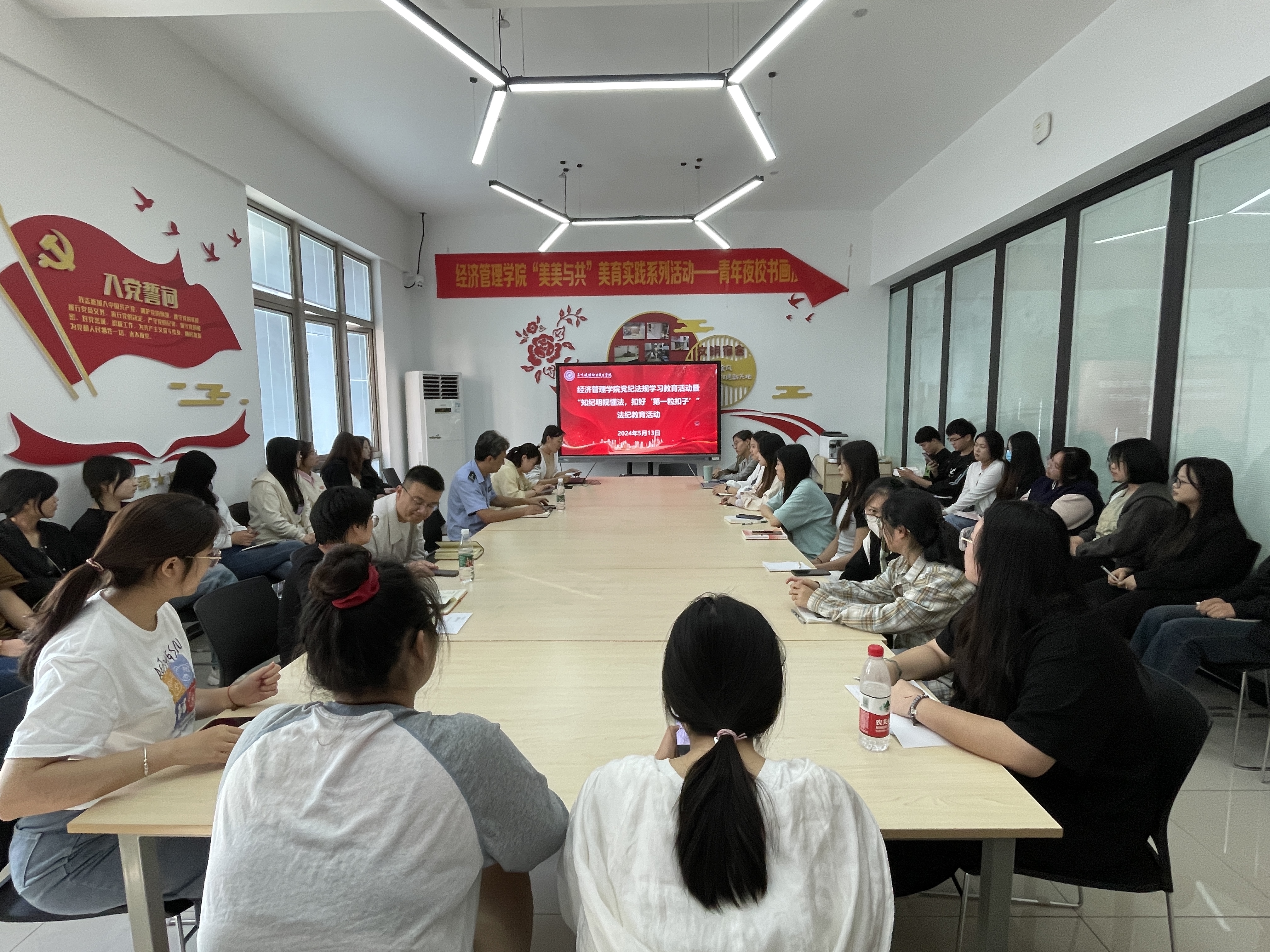 为提高大学生对党纪法规的认识,增强法治观念,引导学生自觉遵守法律法规,做到知纪明规懂法。5月13日下午,经济管理学院组织开展了“党纪法规学习教育活动暨‘知纪明规懂法,扣好‘第一粒扣子’”法纪教育活动。活动邀请科教新城派出所杨斌俊警官担任主讲嘉宾,经济管理学院党总支副书记沈晓婷、学生支部全体党员及入党积极分子参加活动。