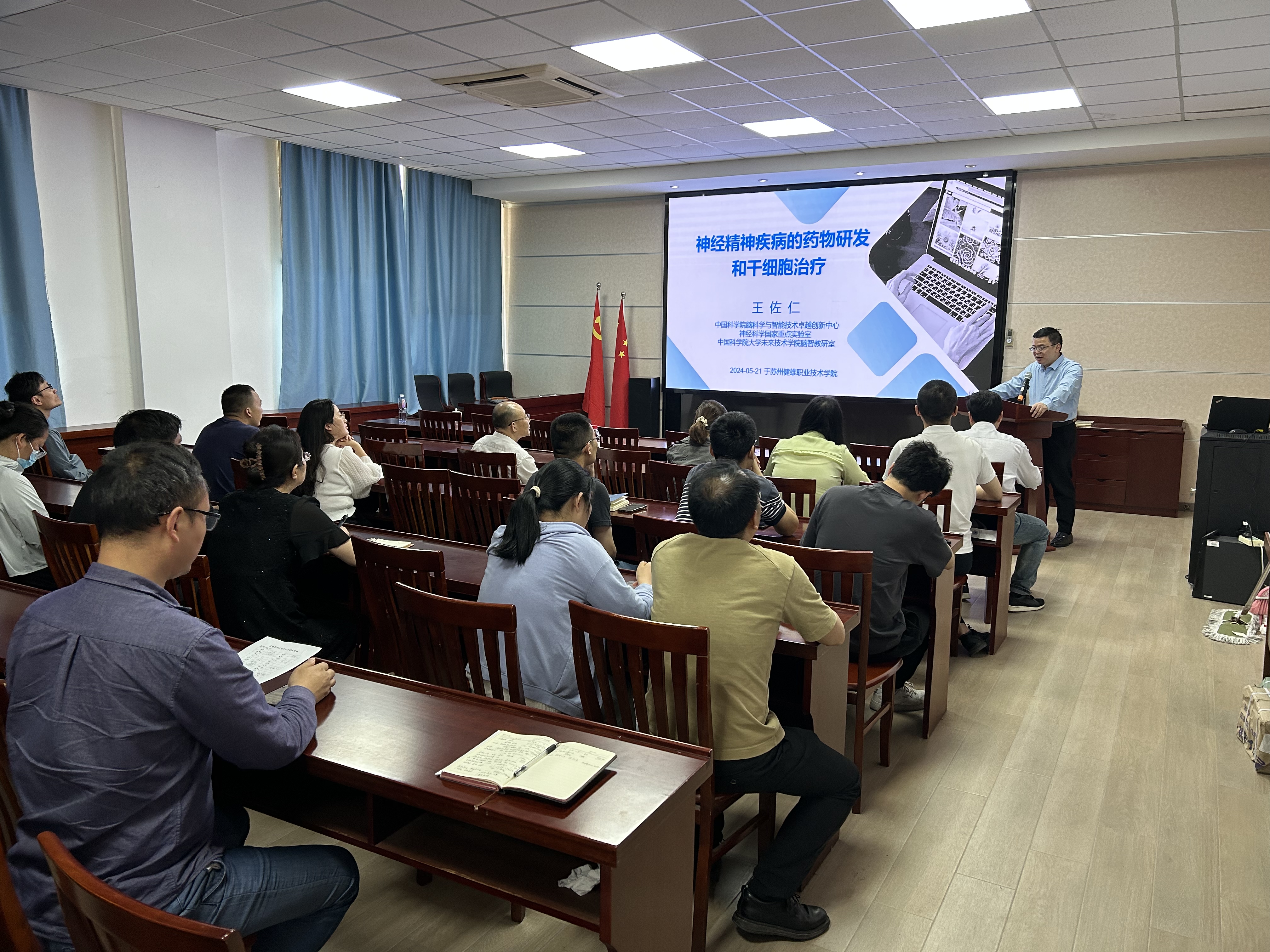 为加强学院教师队伍专业素质建设,5月21日下午,生物医药学院特邀中国科学院神经科学研究所研究员、神经科学国家重点实验室副主任、中国科学院大学和上海科技大学教授王佐仁来校作题为《神经和精神疾病的药物研发和干细胞治疗》的专题讲座,学院领导和相关专业老师参加聆听交流。