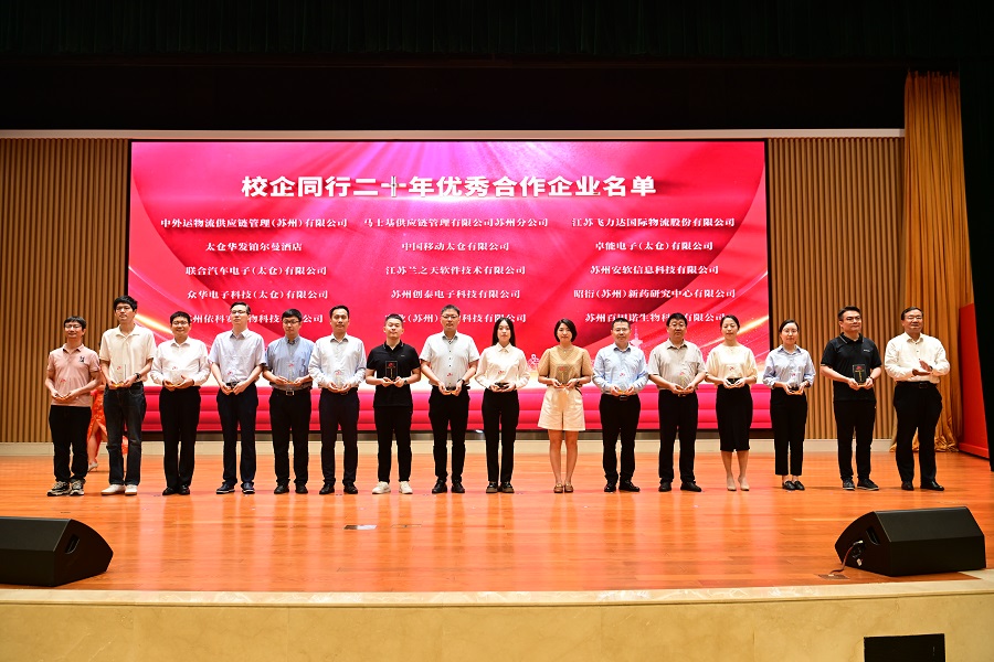 颁发校企同行二十年优秀合作企业纪念奖杯
