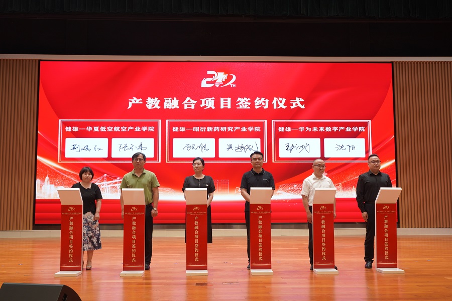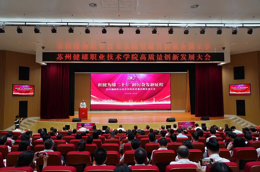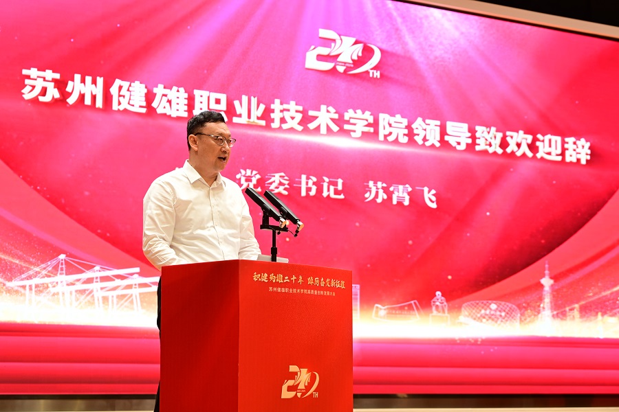 苏霄飞表示,二十年前,太仓市委市政府坚持科学发展观,统筹经济与社会发展,创办了健雄职业技术学院,树立了太仓教育史上的一个里程碑。二十年来,健雄学院扎根太仓大地办教育,成为太仓经济社会发展的重要建设者。这二十年,是艰苦奋斗、积健为雄的二十年,是砥砺奋进、追求卓越的二十年。感谢二十年来历任领导和企业界朋友和校友的关心和支持,感谢参与健雄学院建设的全体教职工,二十年,是学院发展的重要里程碑,学院将坚持立德树人根本任务,锁定“特色鲜明,全国一流”这一航标,确定“深耕太仓、深化双元、深入创新、深得人心”的发展思路,全力打造服务经济社会的“人才仓”“技术仓”和“服务仓”,努力成为新时代太仓新征程上新质生产力的转化者、推动者和实施者!