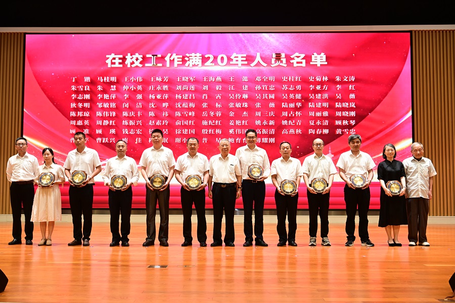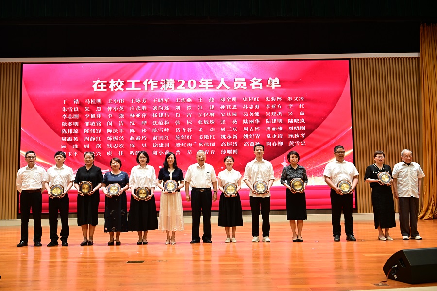 大会表彰环节,学院为“校企同行二十年”优秀合作企业与在校工作满20年的教职工分别颁发了纪念奖杯、奖牌。