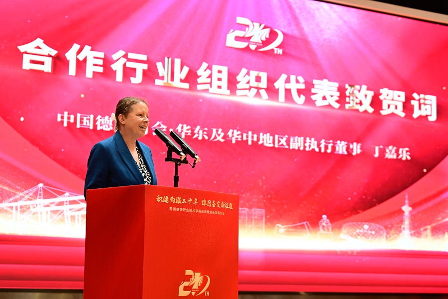 中国德国商会·华东及华中地区副执行董事丁嘉乐博士在致辞中表示,健雄学院是太仓唯一一所职业技术学院,这也是AHK在中国的第一个合作伙伴,双方合作是一个标志性典范项目,双元制校区的启动,会进一步加强双方的紧密合作,服务地方经济和德企发展。