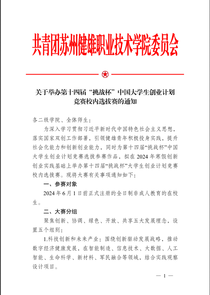为深入学习贯彻习近平新时代中国特色社会主义思想,聚焦为党育人功能,从实践教育角度出发,引导和激励学生弘扬时代精神,把握时代脉搏,通过课程、孵化、研究互相融通的创新创业实践育人体系,将所学知识与经济社会发展紧密结合,切实提高创新、创意、创造、创业的意识和能力同时为科学备战2024年江苏省、全国挑战杯大学生创业计划竞赛,根据校团委相关文件规定智能制造学院于2开始启动第十四届挑战杯中国大学生创业计划竞赛院级孵化项目选拔工作