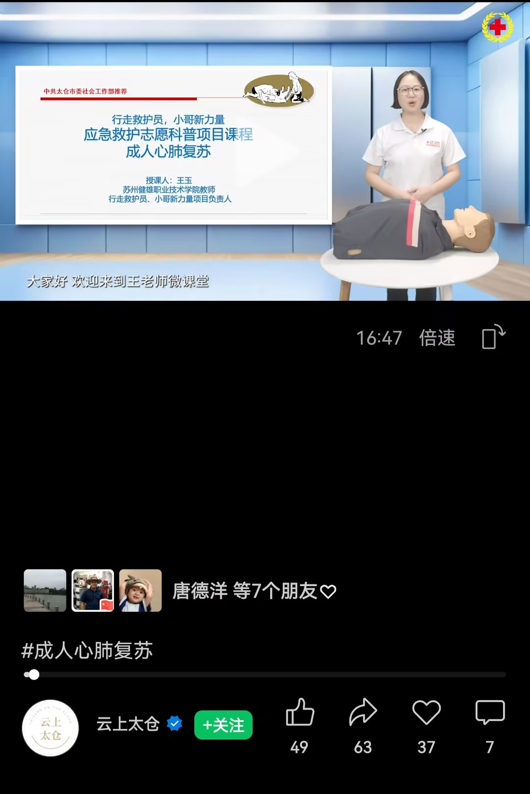 太仓媒体“周周见”丨应急救护志愿科普项目课程-成人心肺复苏