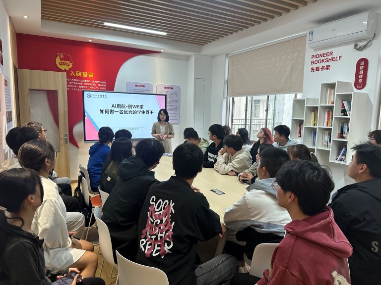 10月16日下午,“AI启航·创WE来”人工智能学院团总支学生骨干系列培训第一讲在一站式学生社区开展,辅导员杨诗怡老师,学生会组织部负责人杨薪园进行《如何做一名优秀的学生骨干》专题授课,人工智能学院2024级班长、团支书参加。