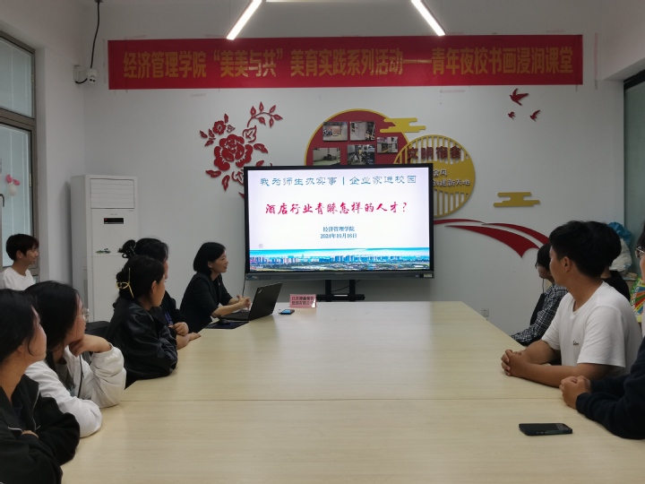 10月16日,经济管理学院学生党支部邀请江苏蒲鑫酒店管理有限公司人事总监王燕女士于紫薇社区为酒店管理与数字化运营专业学生开展《酒店行业青睐怎样的人才?》讲座,受到学生的喜爱和欢迎。
