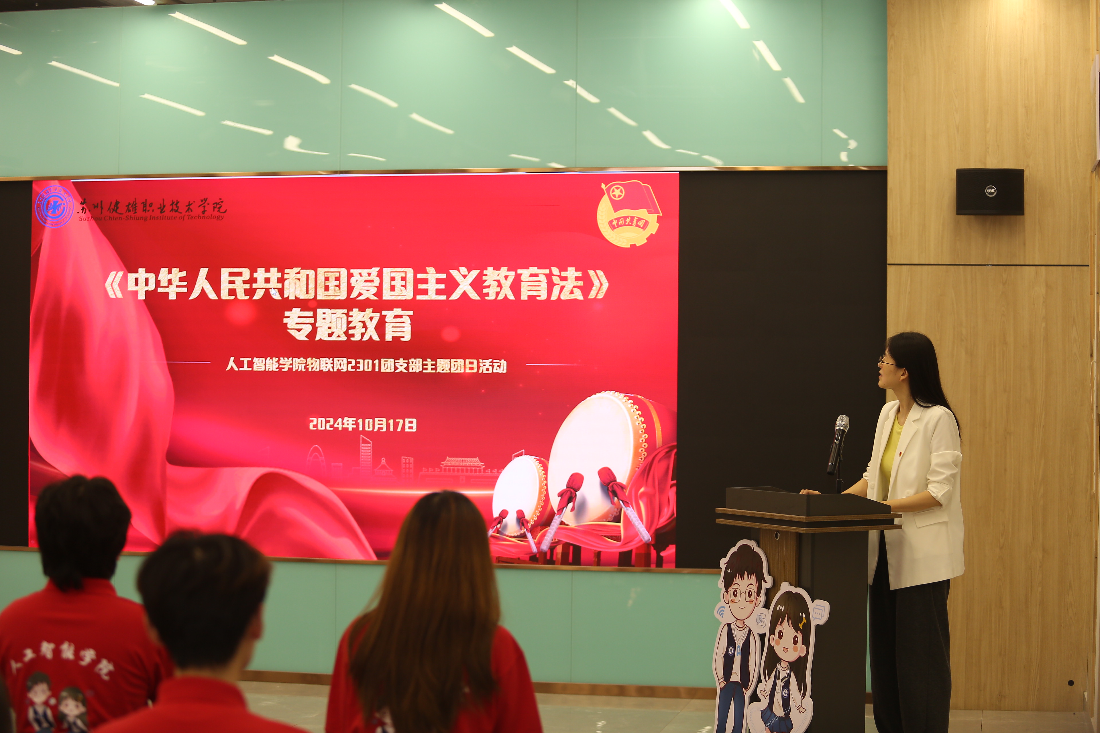 英烈事迹分享结束后,辅导员于苏霞和团支部书记、班长带领团员青年们一起开展了以“深入理解爱国主义”为主题的《中华人民共和国爱国主义教育法》专题学习主题班会,跟同学们一起讨论了爱国主义精神在当代中国的意义。班会中,大家纷纷举手分享从英烈事迹中收获的感悟和对爱国主义精神的理解以及对《中华人民共和国爱国主义教育法》的认知。学习结束后,团支部现场组织了一场爱国主义教育法知识答题互动,团员们积极踊跃参与抢答,将现场所学的“热知识”迅速输出,知识点碰撞出热烈的爱国主义乐章萦绕在活动现场,活动在充满朝气和活力的团歌奏唱中进入尾声。