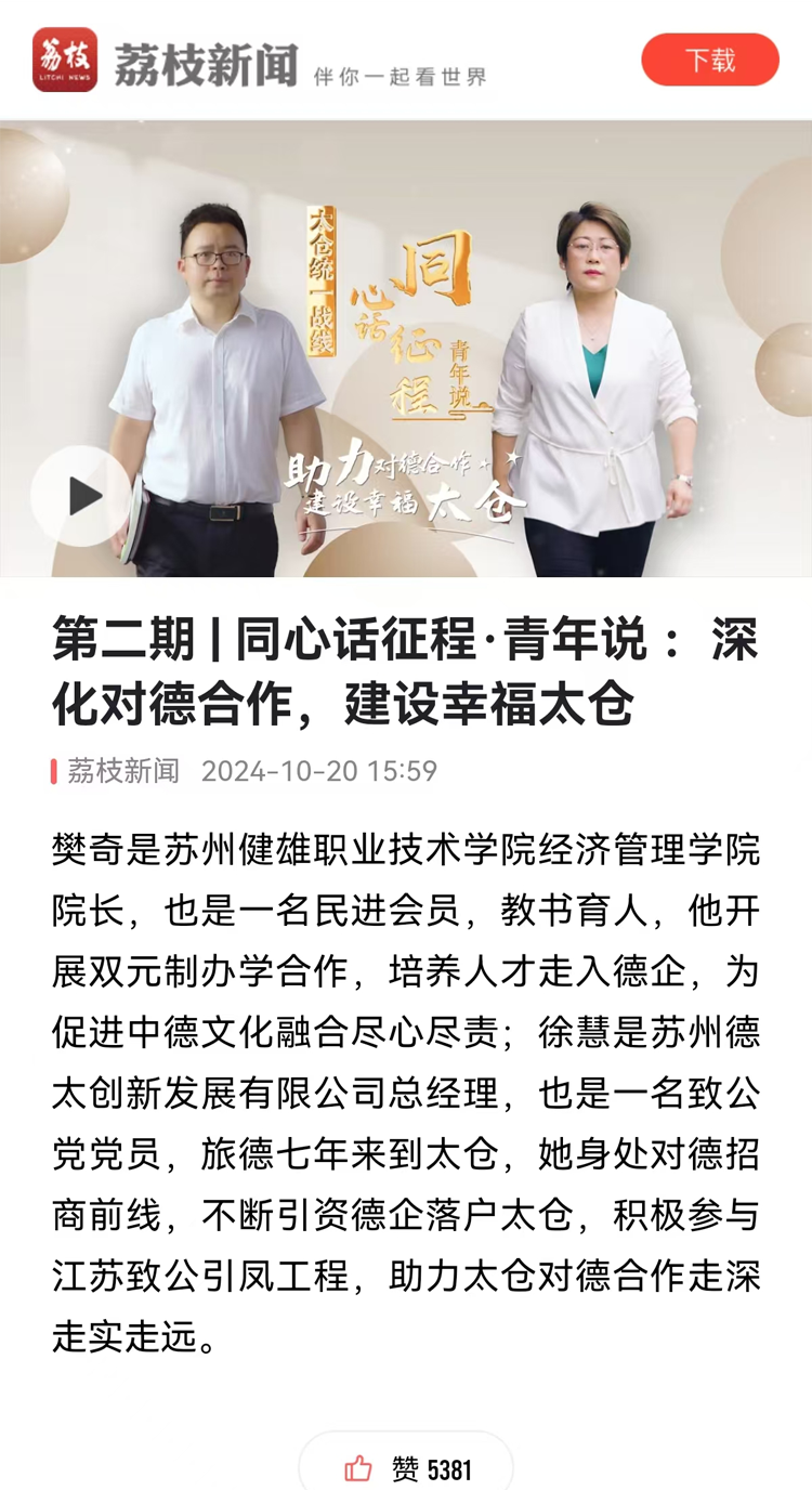 荔枝网 第二期 | 同心话征程·青年说 :深化对德合作,建设幸福太仓