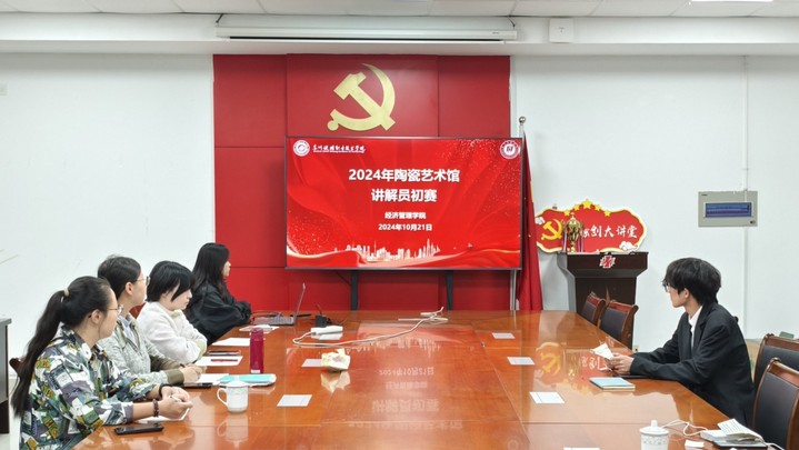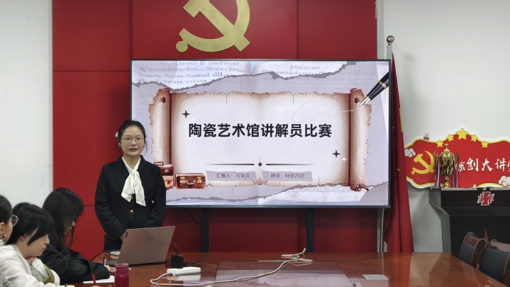为更好发挥文物收藏展示、鉴赏研究、传播传承与文化育人的功能,增强学生对陶瓷艺术馆的了解,提升美育浸润,10月22日,经济管理学院于C3-202举办“古韵瓷辉·探寻千古陶瓷之美”陶瓷艺术馆讲解员初赛。顾宇婷、房芸、雷婧翎三位老师担任初赛评委。