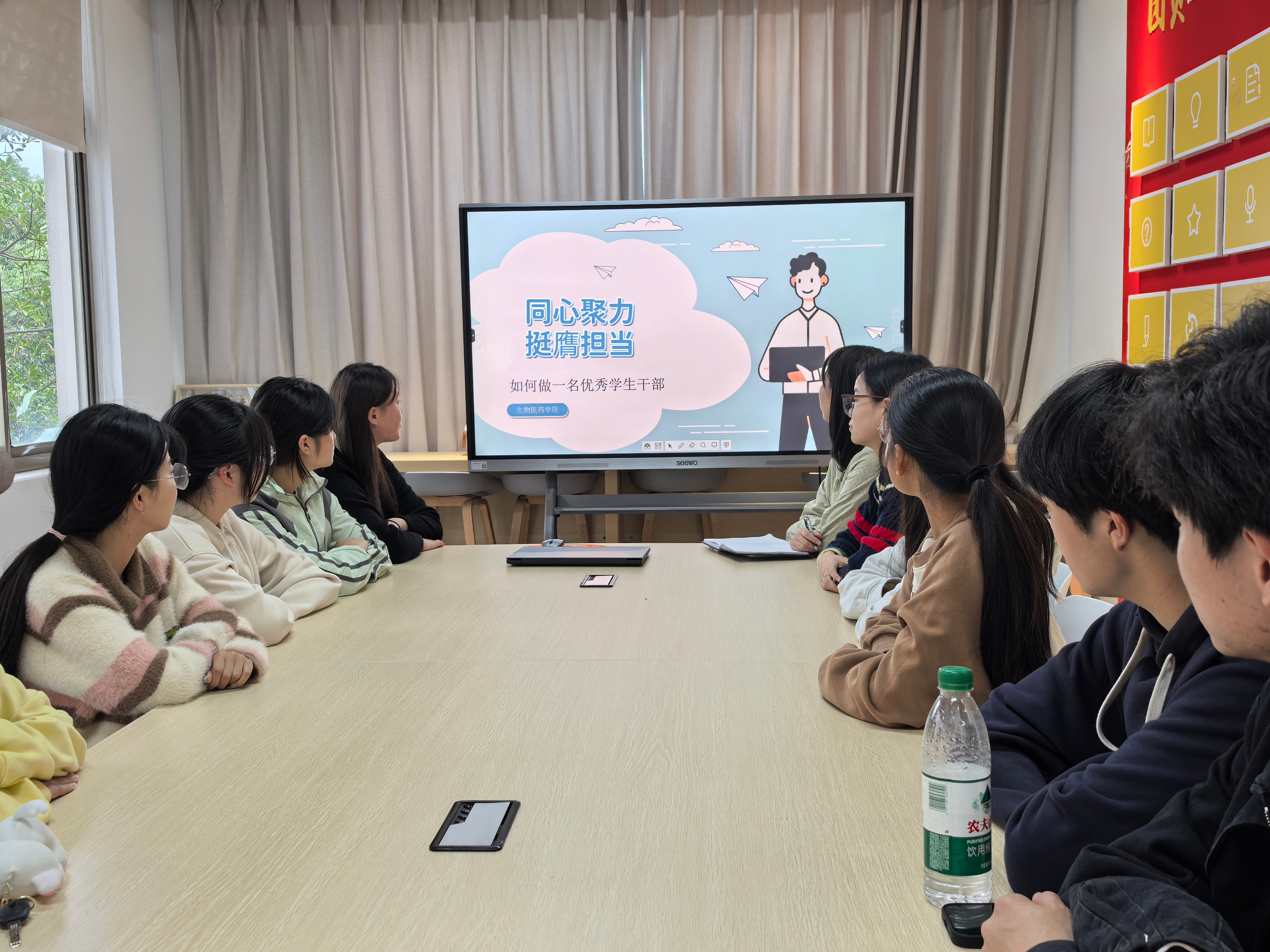 会上,辅导员王晓晴引导新生班干部深入探讨了“成为学生干部的初心”这一话题,旨在激发他们的使命感与责任感。同时,新生班干部们也积极反馈了入学以来工作中遇到的问题,通过开放讨论共同寻求解决方案,不仅锻炼了问题解决能力,也加强了彼此间的交流合作。