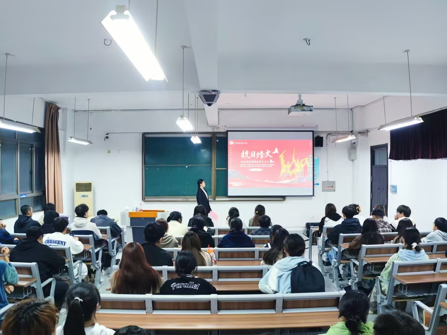 人工智能学院“AI启航·创WE来”学生骨干培训第三期为理想信念教育,今年是中华人民共和国成立75周年,为弘扬爱国主义精神,激励学生骨干坚定理想信念,奋发有为,11月12日晚,人工智能学院团总支在C3-205带领学生会成员开展《追忆英雄历史,厚植爱国情怀》英雄故事分享会,院学生会副主席王纯雨1937年淞沪会战末期的四行仓库保卫战作故事分享,学生会主席戴云龙进行主持。