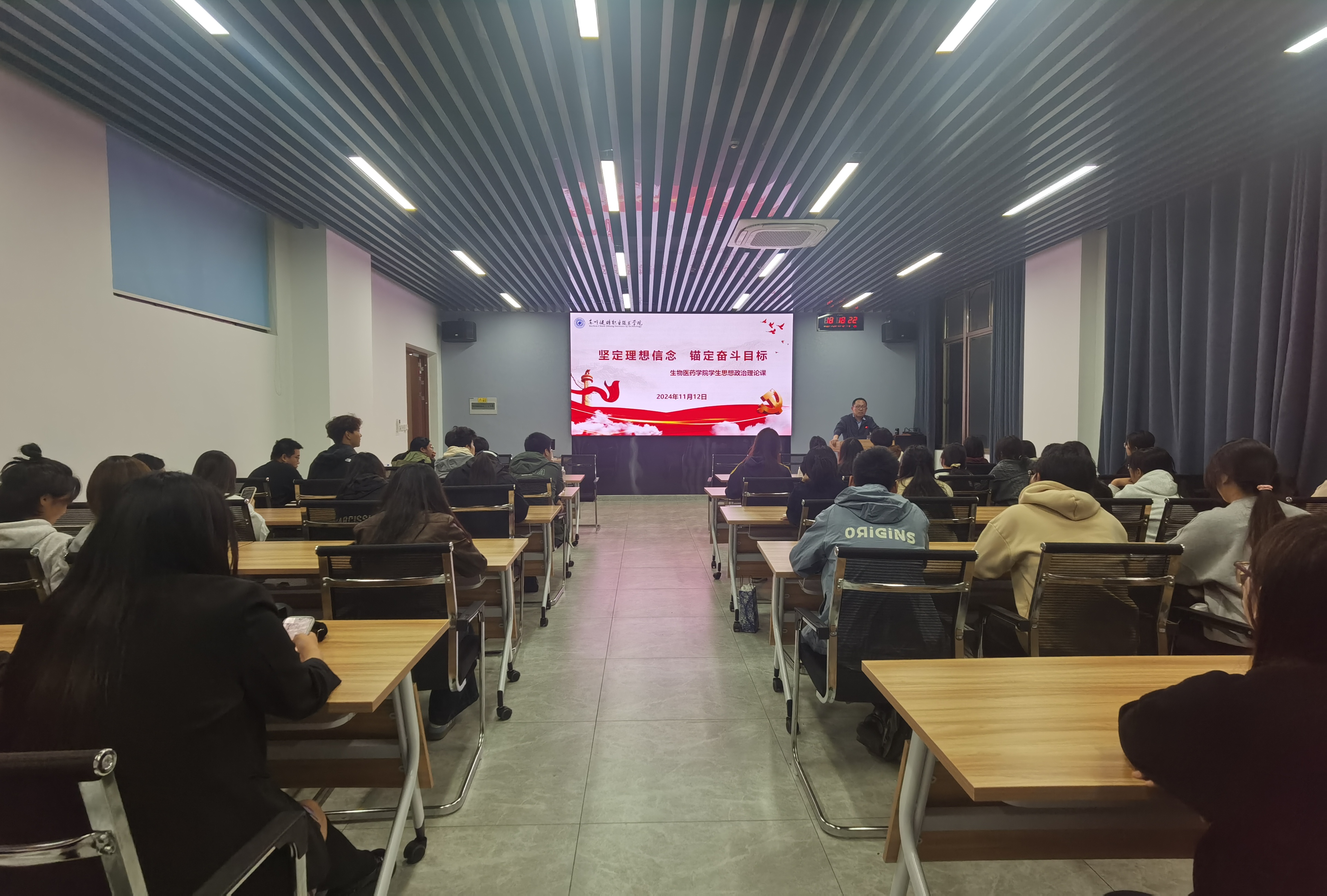 为认真贯彻落实立德树人根本任务,充分发挥思想政治理论课在学生成长成才中的重要作用,不断提高学生思想政治素养,11月12日,生物医药学院党总支书记王志明为2023级、2024级药学专业学生代表上思想政治理论课。