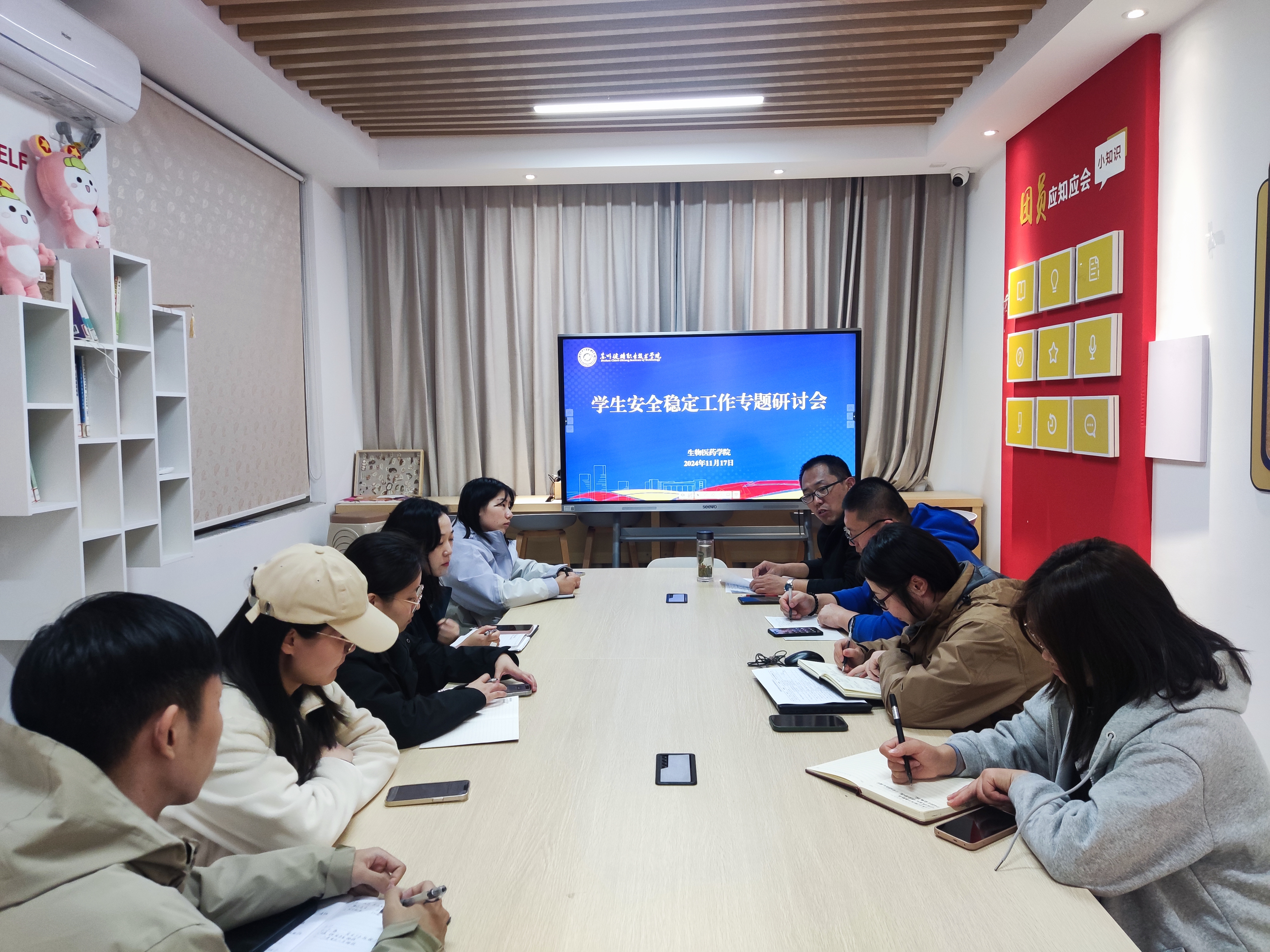 为扎实做好学生安全稳定工作,进一步提高学生工作队伍应急处置能力,11月17日晚,生物医药学院在“一站式”学生社区召开学生安全稳定工作专题研讨会,会议由党总支书记王志明主持,全体辅导员参会。
